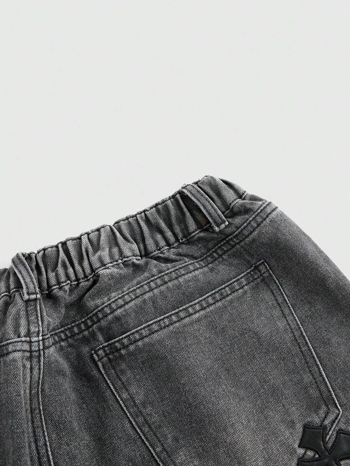 Grunge Punk Classic 2025 European & American Cross Embroidered Straight-Leg Jeans
