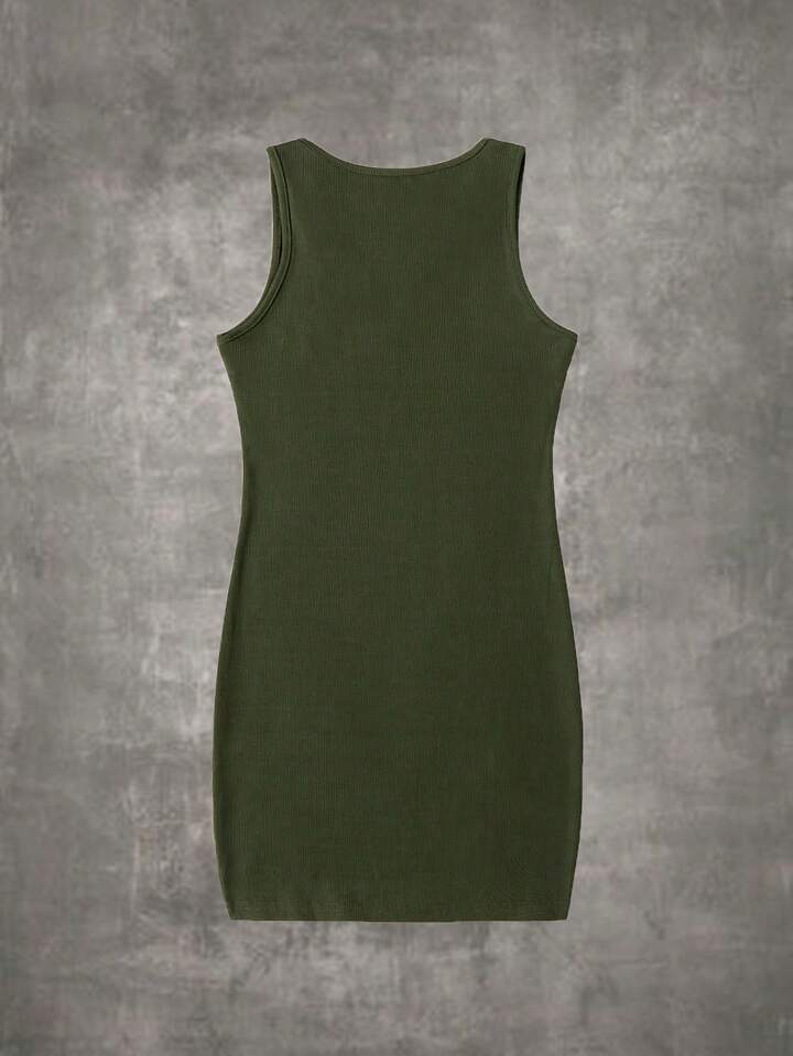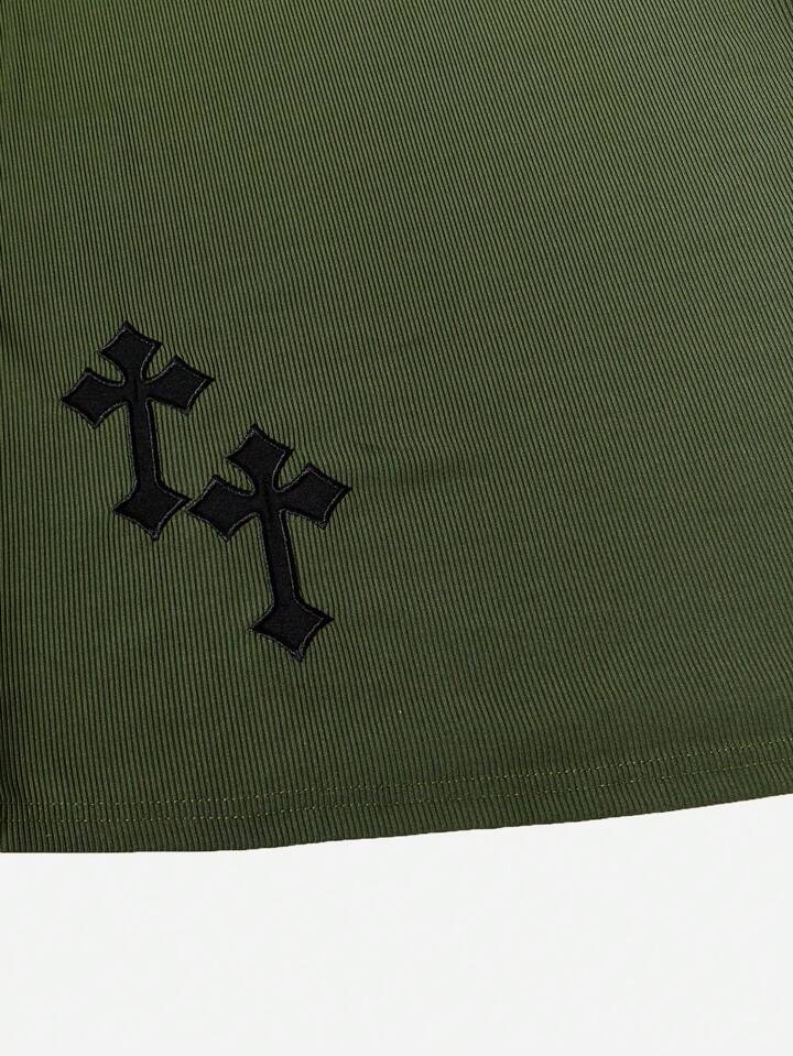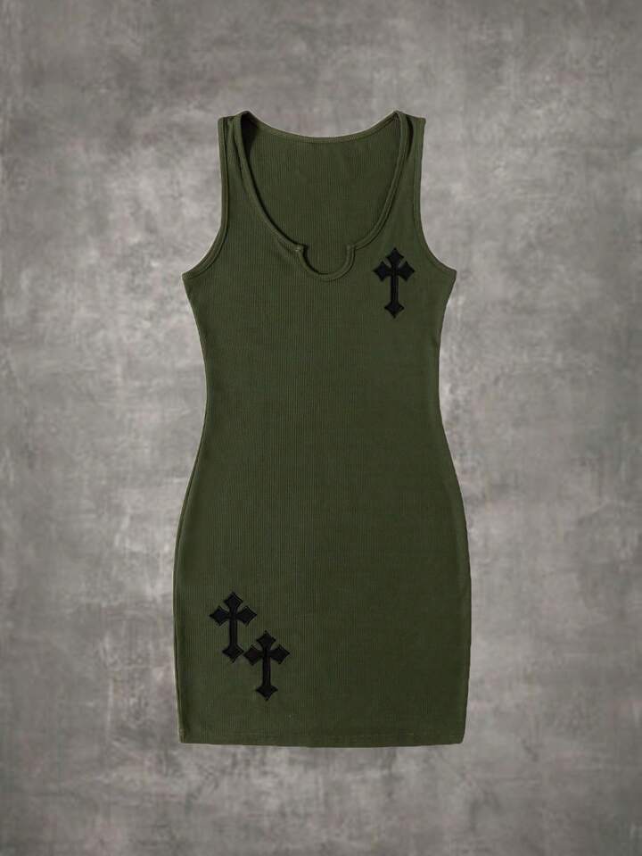 Grunge Punk Cross Embroidery Notched Neck Tank Dress