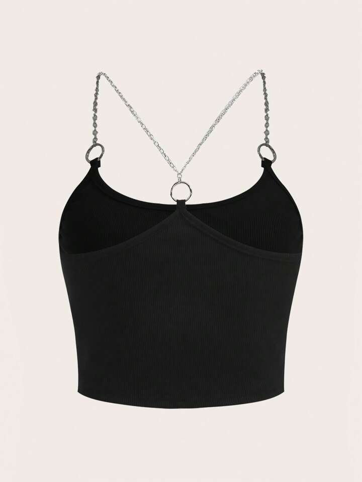 Grunge Punk Cross Rhinestone Chain Detail Cami Top
