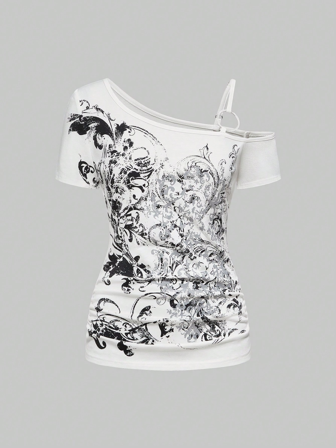Grunge Punk Cute Tropical Purple Vine Cross Shoulder Sleeveless Elastic Shirred Women's Kpop T-Shirt, Suitable For Summer Beach, Graduation, Easter, Concerts, Nashville Vacation, Elegant