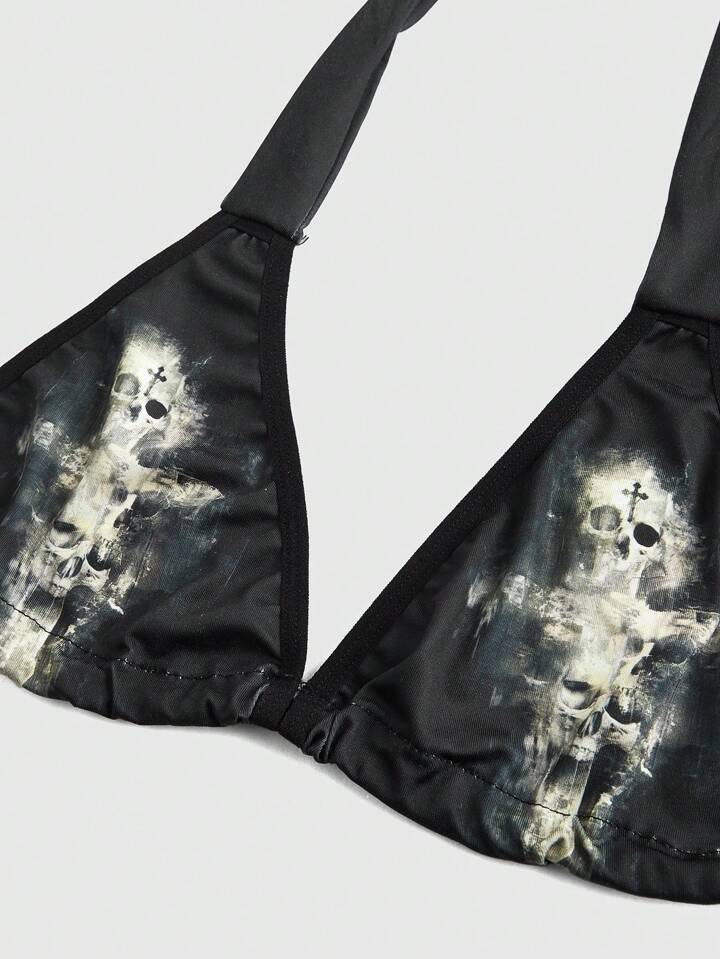 Grunge Punk Dark Punk Gothic Skull & Cross Print Triangle Cup Bralette