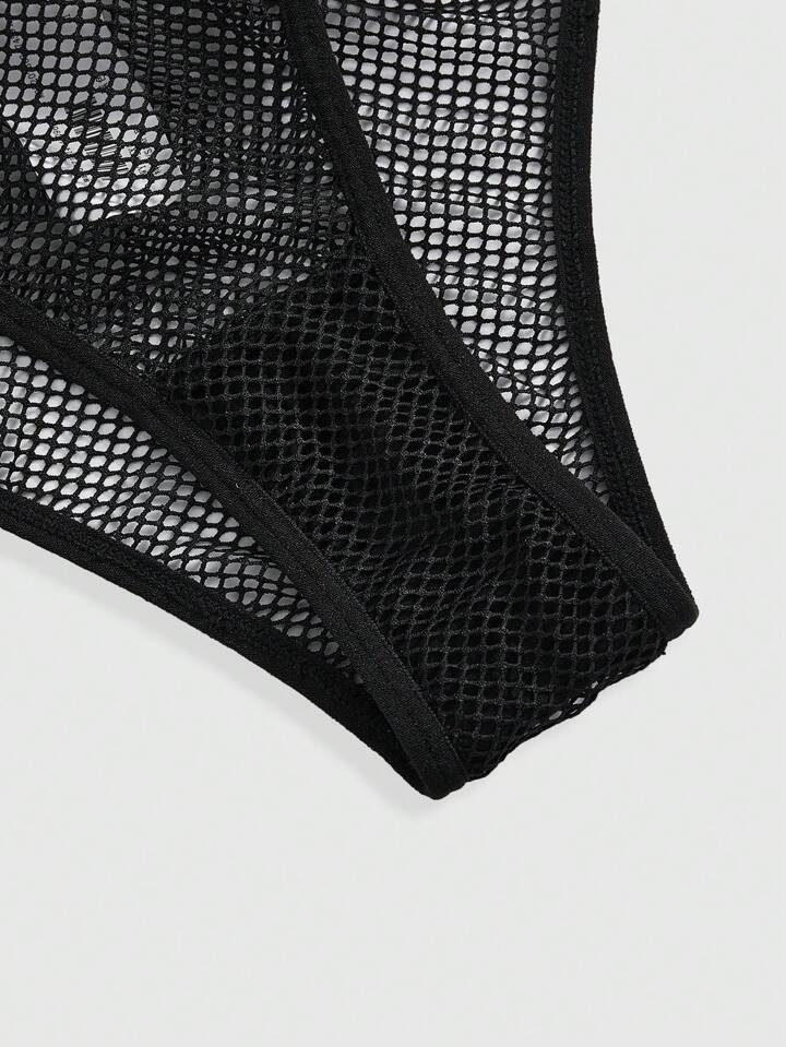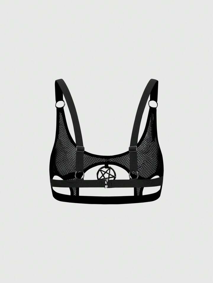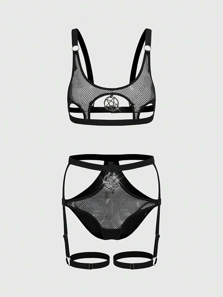 Grunge Punk Dark Punk Sheer Mesh Bralette & Panty Set, Sexy Lingerie