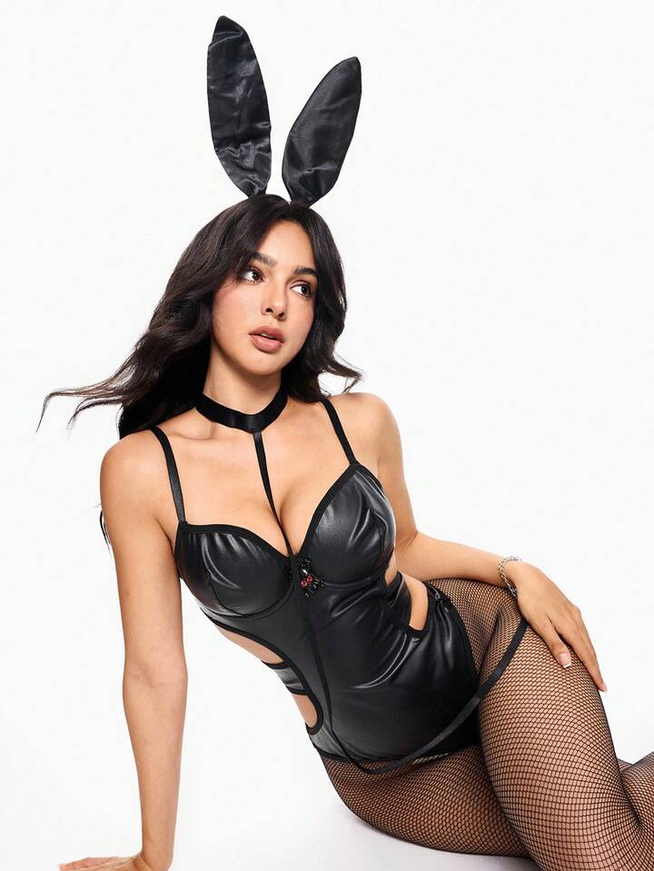 Grunge Punk Dark Punk Zipper Seamless Bodysuit, Sexy Halter Neck Rope Lingerie Set
