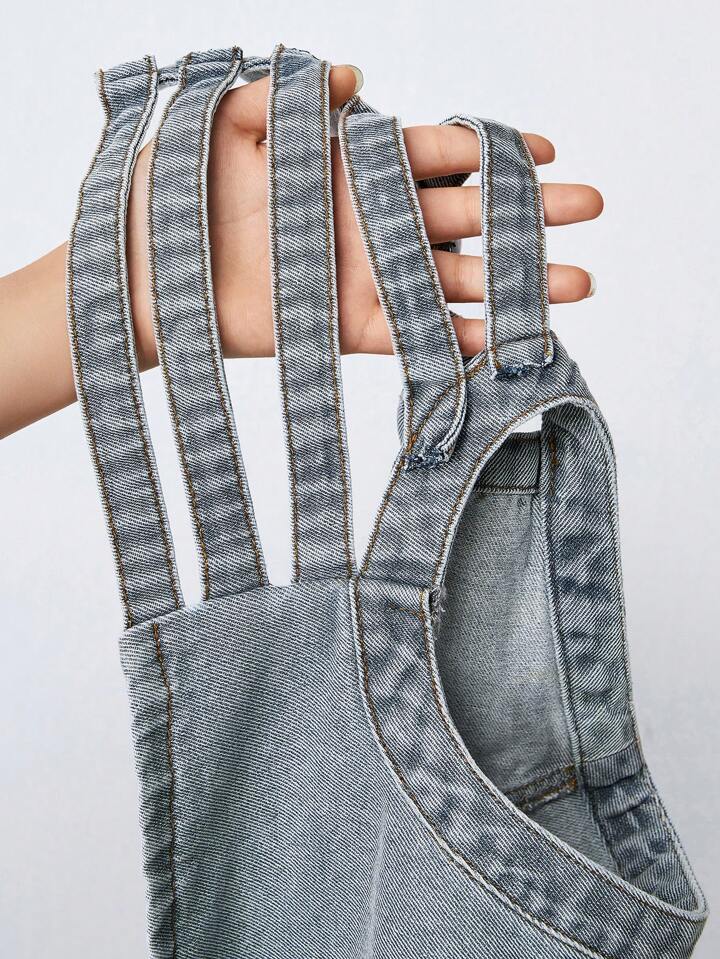 Grunge Punk Distressed Fringed Hollow Skeleton Style Multi-Layer Button-Up Washed Denim Jacket For Women