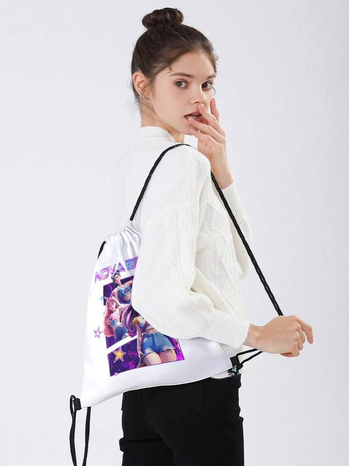 Grunge Punk Drawstring Backpack For Sports, Fitness, Travel, Swimming, Beach. Sports Bag, Gym Bag, Suitable For Men, Women, Boys, Girls. Gym Accessories, School Backpack
