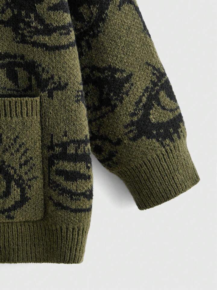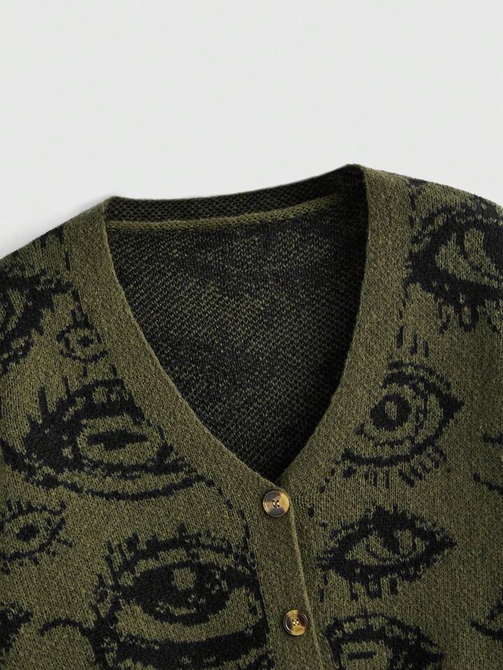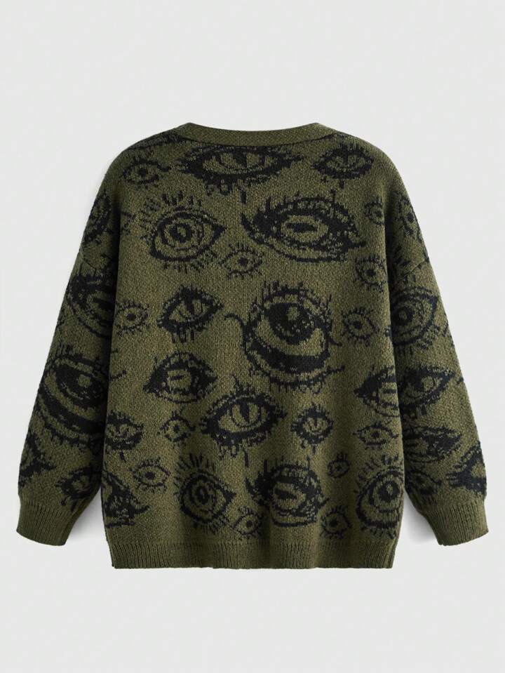 Grunge Punk Eye Pattern Drop Shoulder Cardigan, School,Long Sleeve Tops