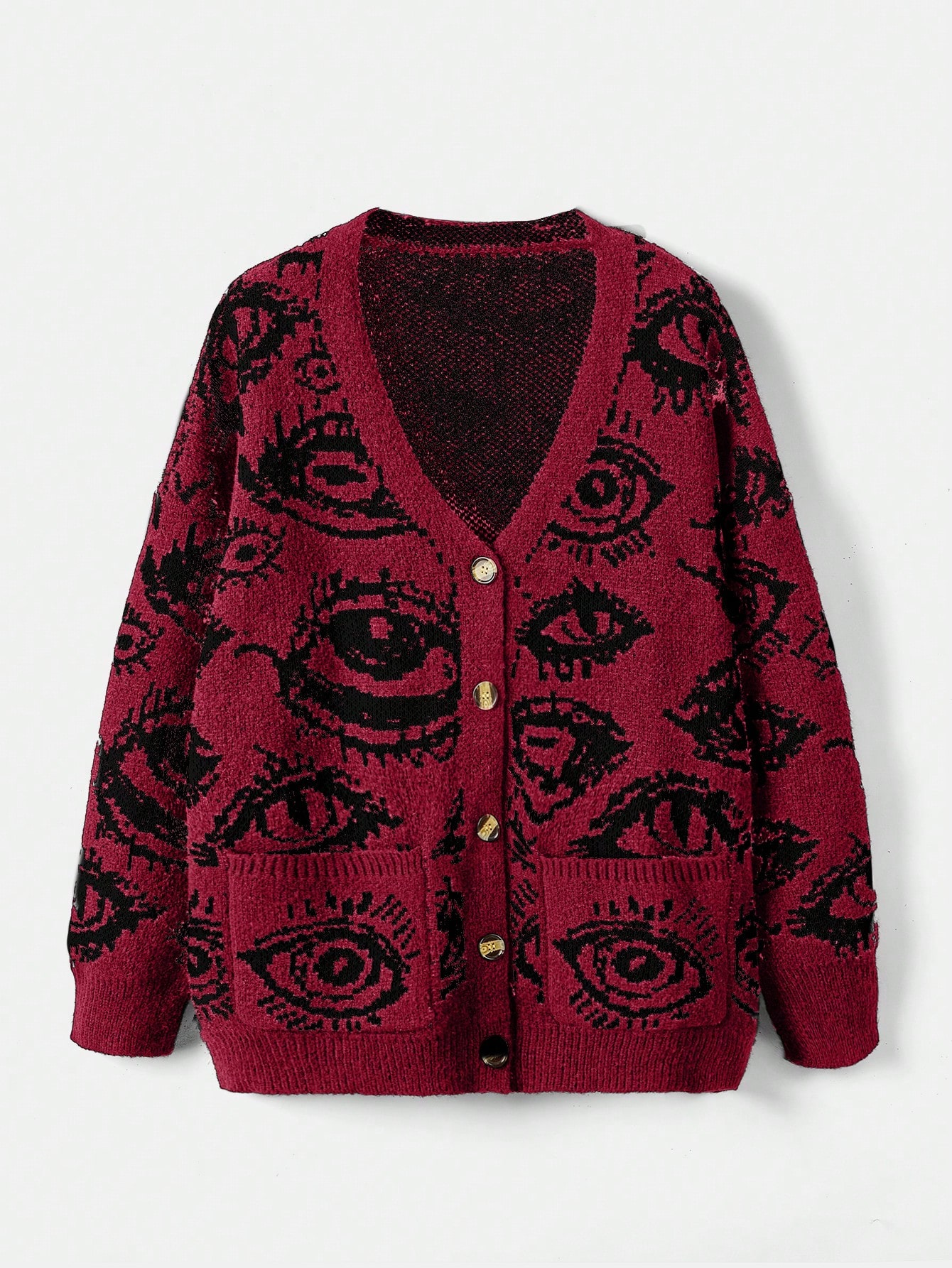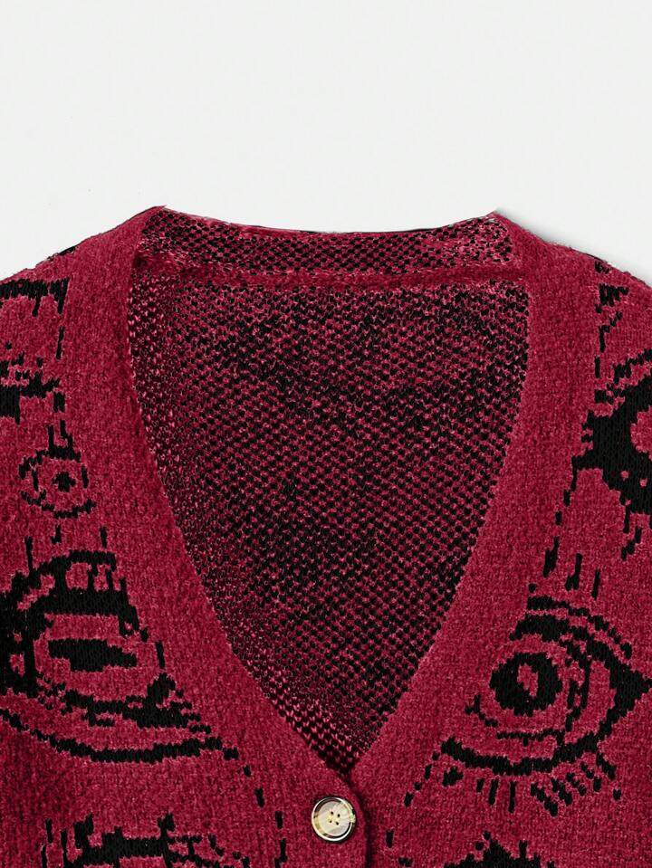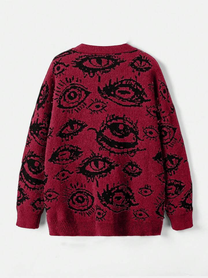 Grunge Punk Eyelash Design Drop Shoulder Cardigan