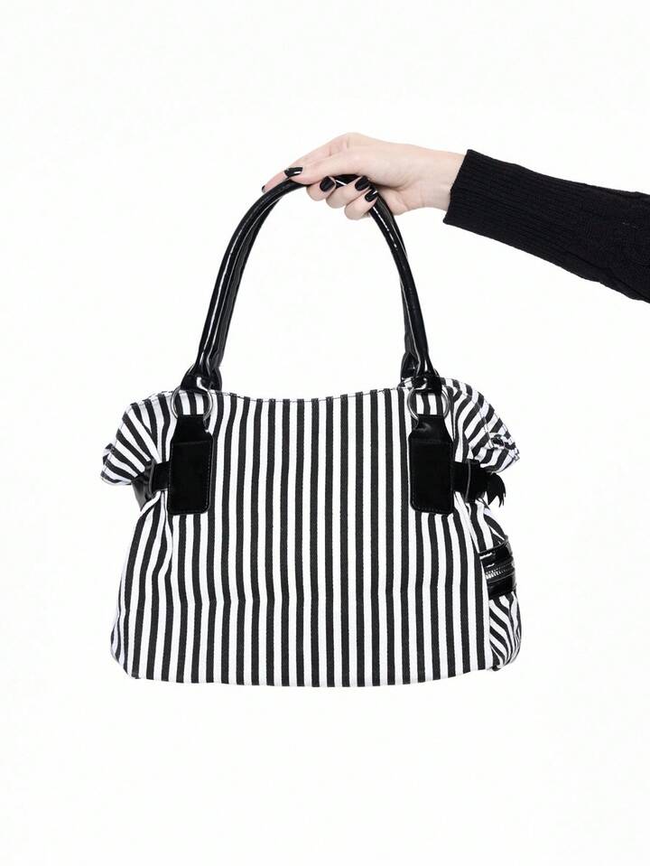 Grunge Punk Fashionable Striped Chain Cross Pendant Decorated Tote Bag