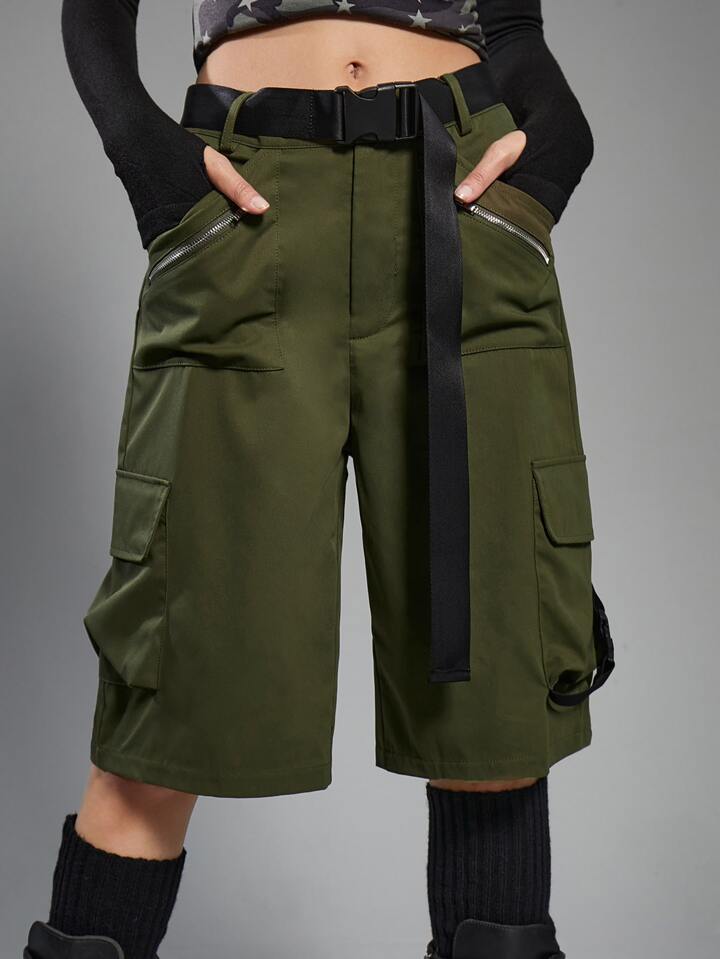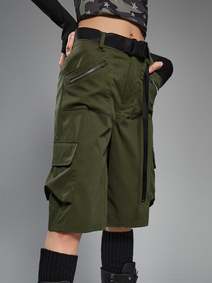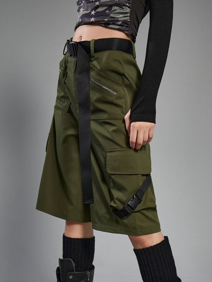 Grunge Punk Flap Pocket Cargo Shorts