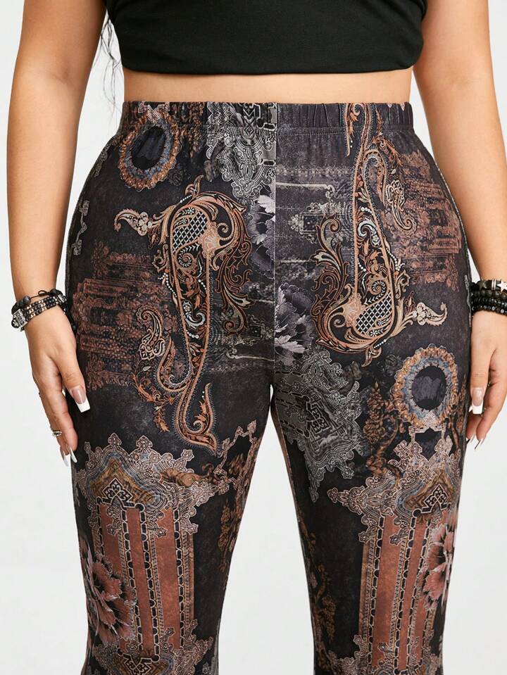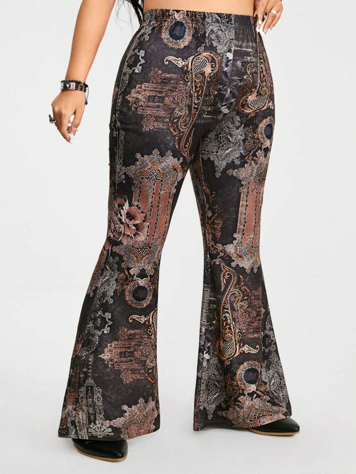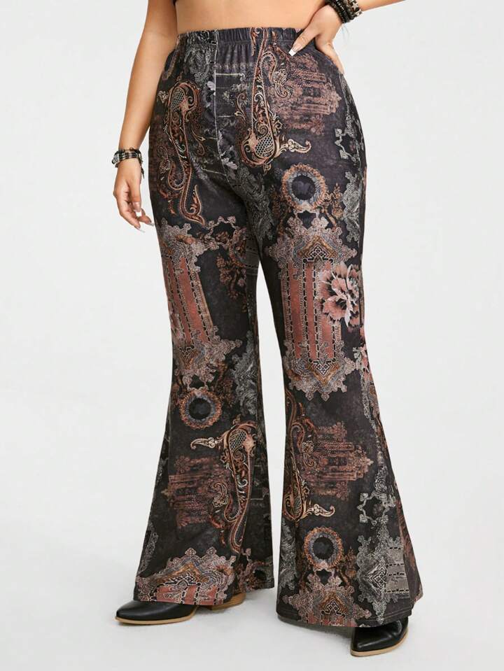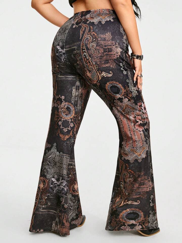Grunge Punk Gothic Bohemian Paisley Pattern Digital Print Plus Size Flared Pants