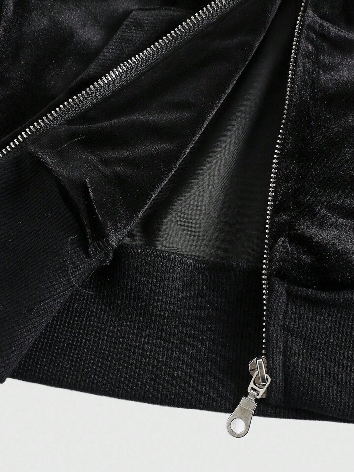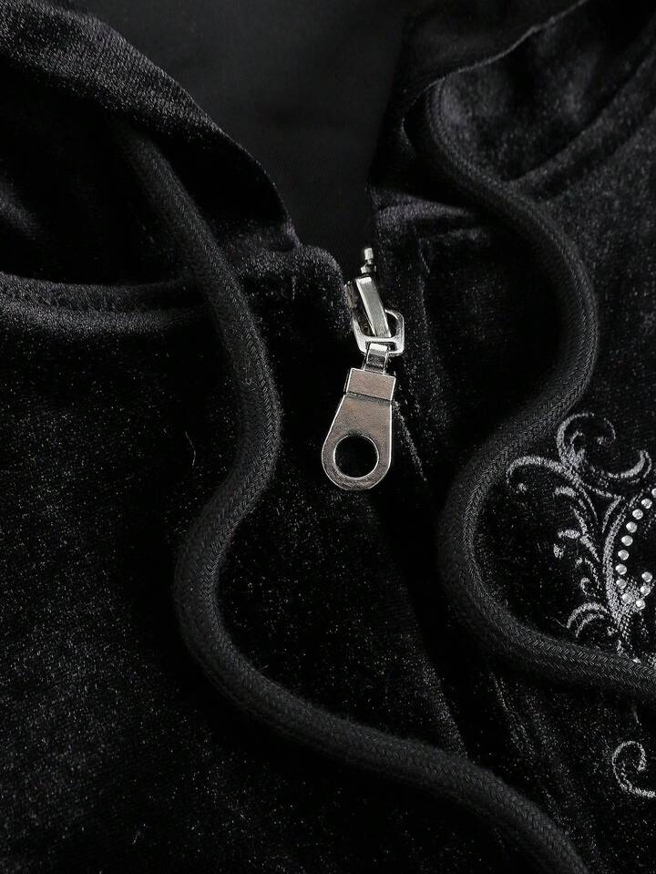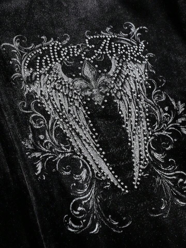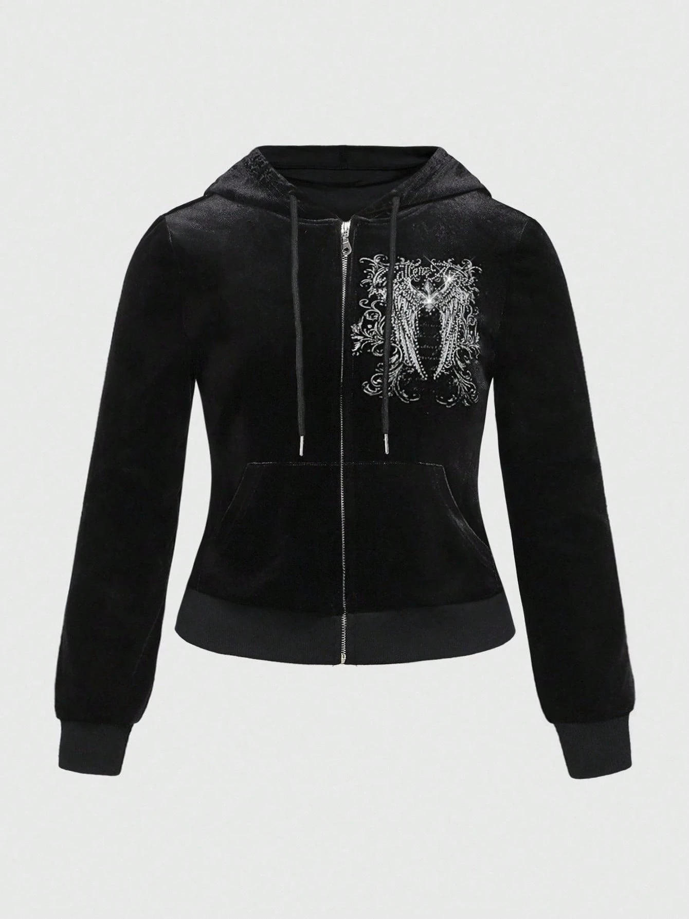 Grunge Punk Grunge Style Distressed Wing Print Rhinestone Embellished Women's Hooded Sweatshirt