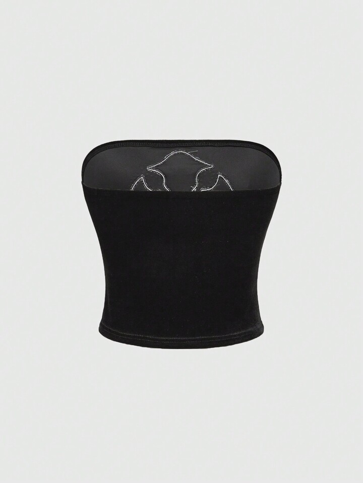 Grunge Punk Gyaru Velvet Patchwork Leopard Print & Cross Pattern Tube Top