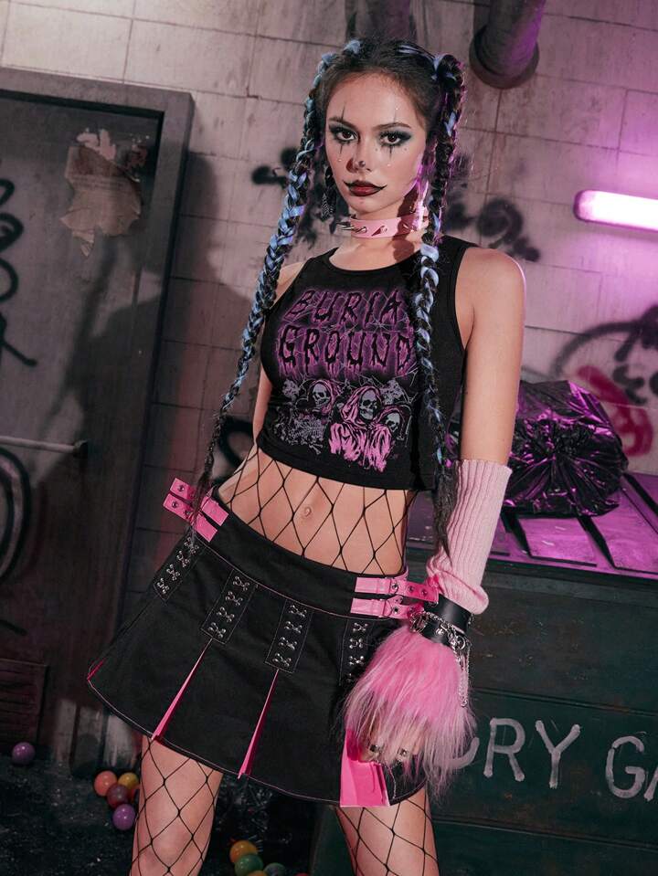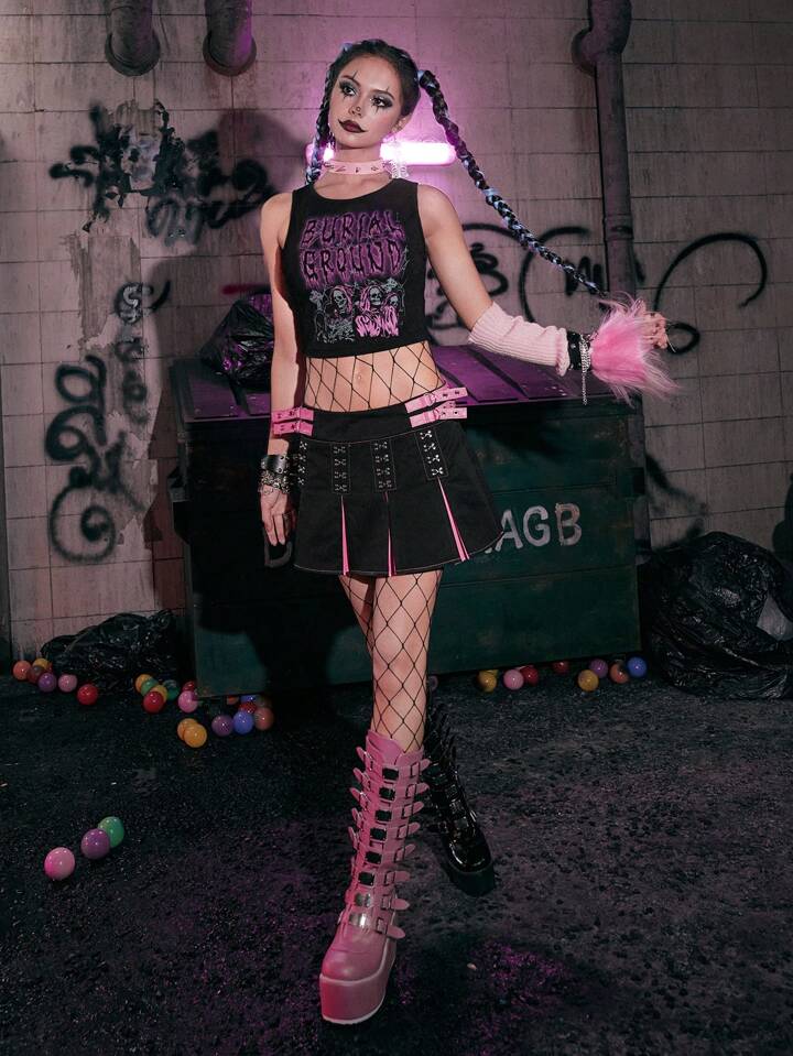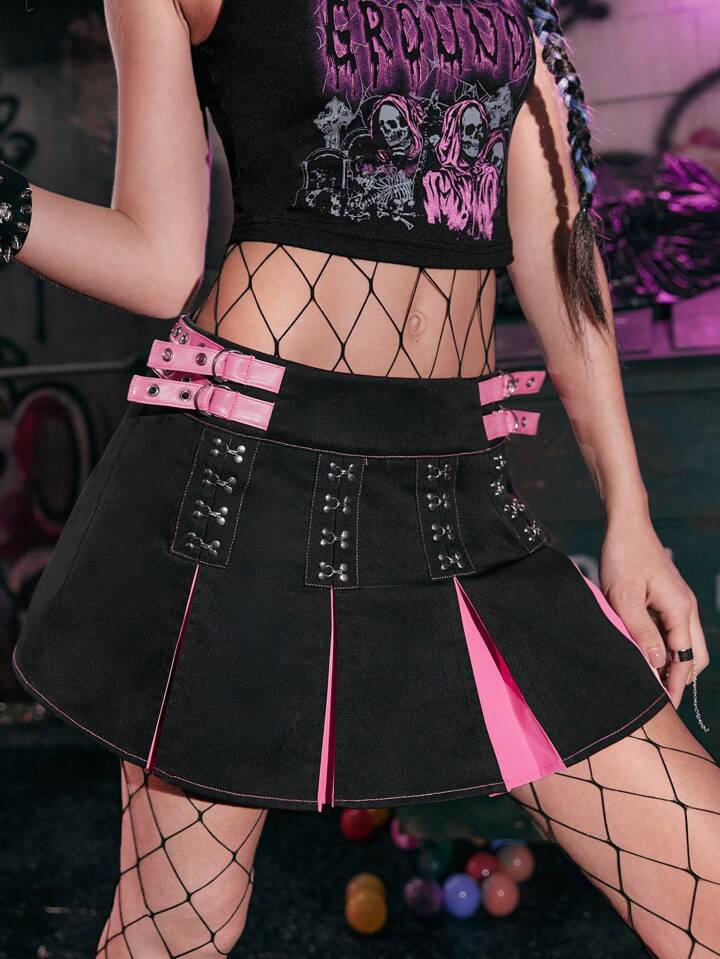 Grunge Punk Hook And Eye Contrast Tape Detail Skirt