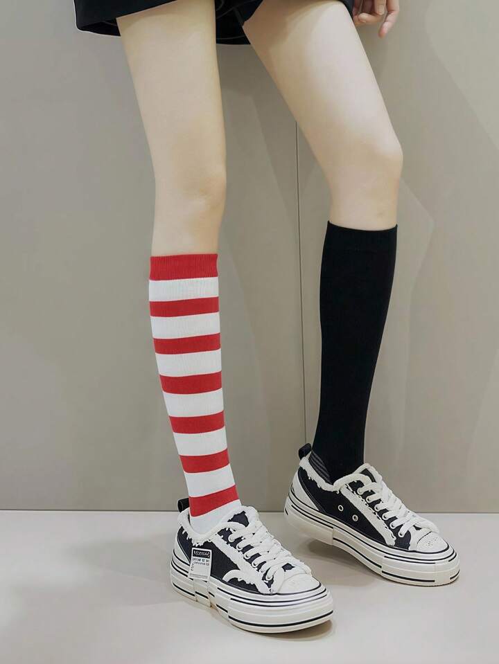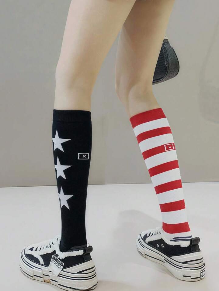 Grunge Punk Independence Day USA Flag & Stripe Pattern Mid-Calf Socks, Colorblock Design Casual & Fashion, All Seasons
