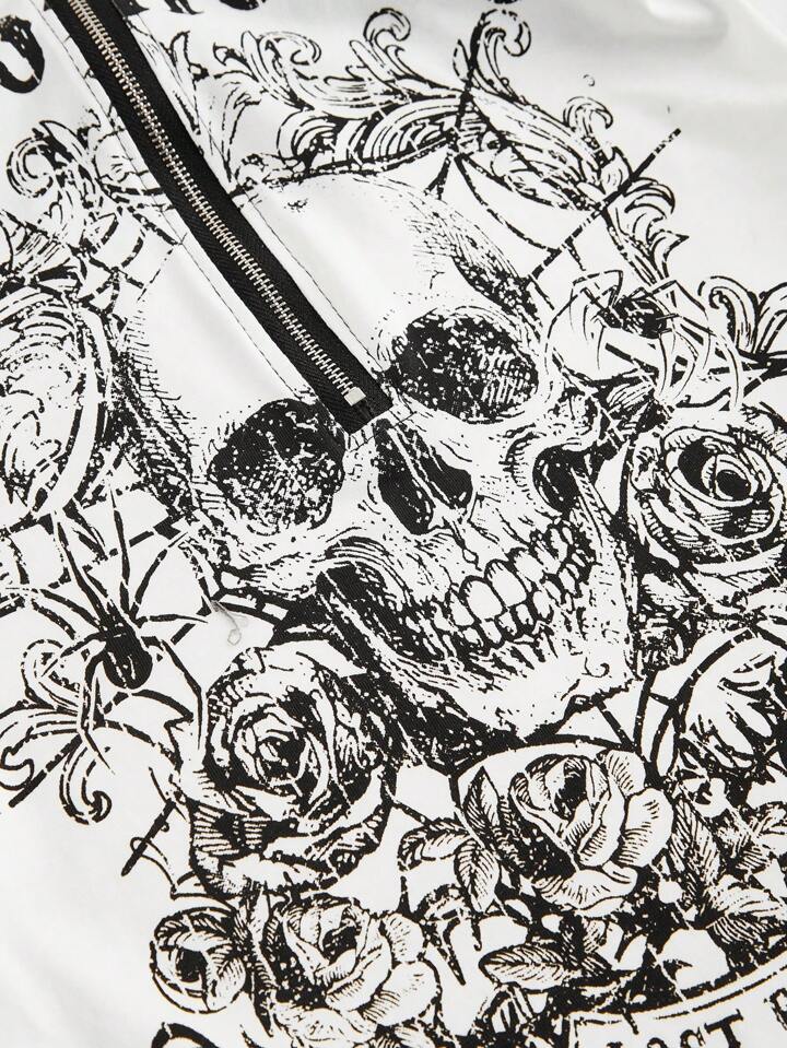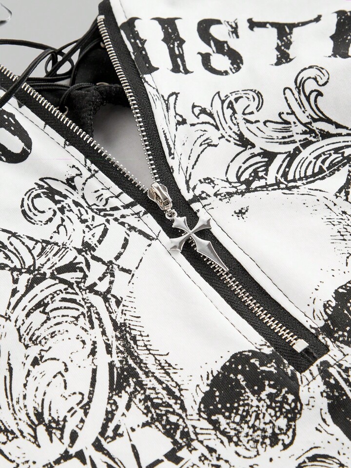 Grunge Punk Kpop Cross Pendant Punk Skull Print 2 In 1 Leopard Pattern Bodycon T-Shirt For Women, Concert Festival Halter Top