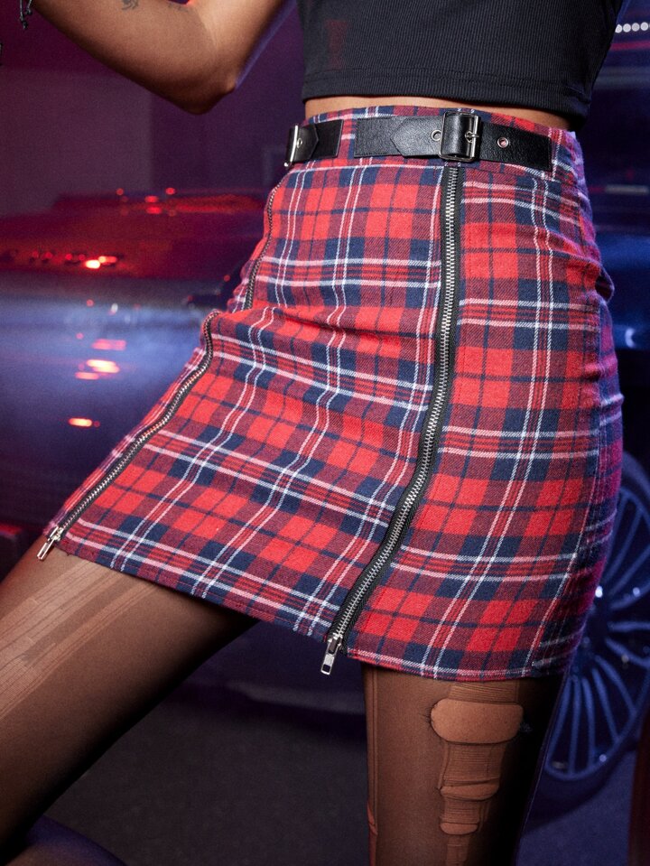 Grunge Punk Kpop Plaid Zip Up Skirt