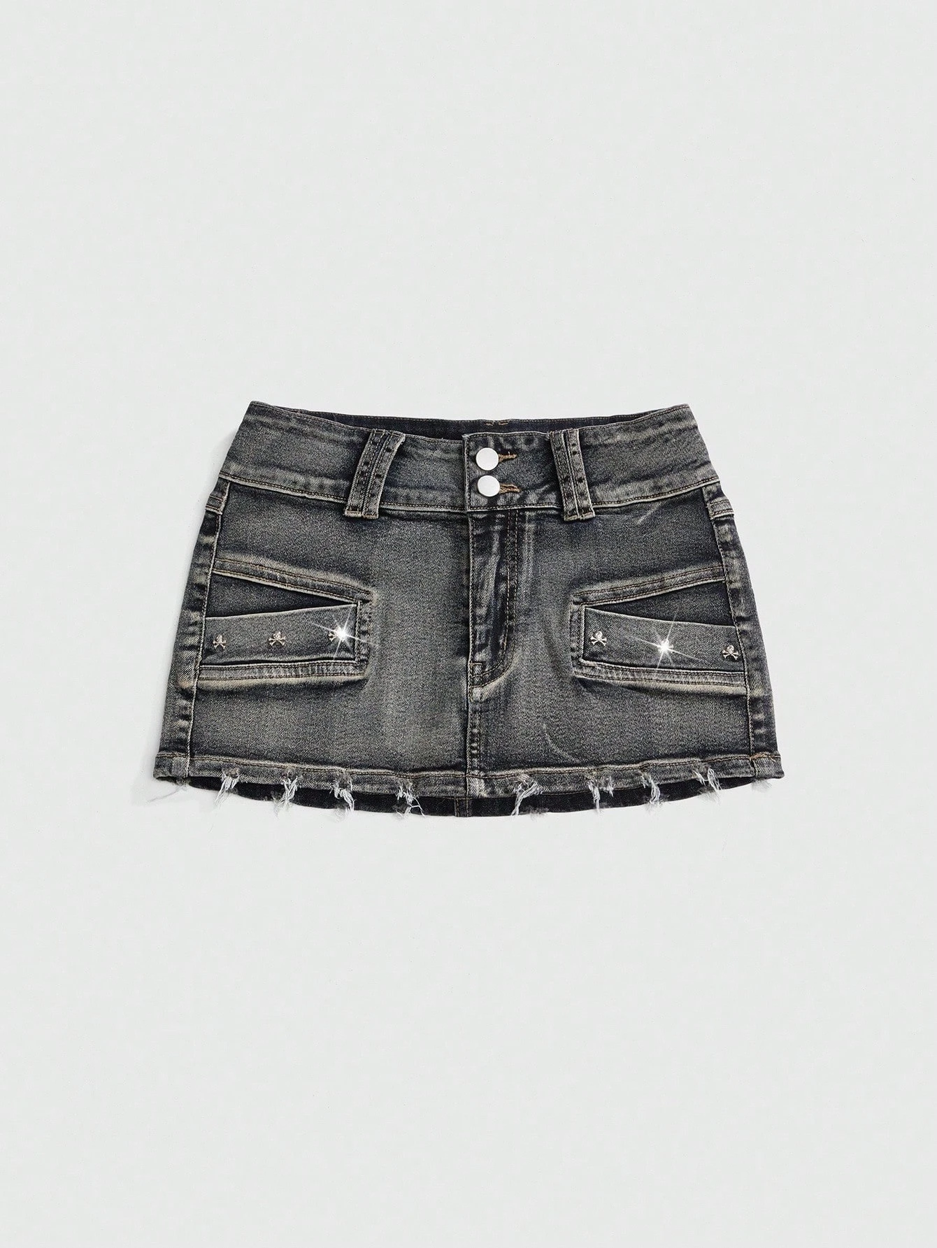 Grunge Punk Kpop Vintage Distressed Skull Studded Low Waist Sexy Denim Mini Skirt For Women
