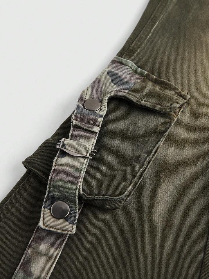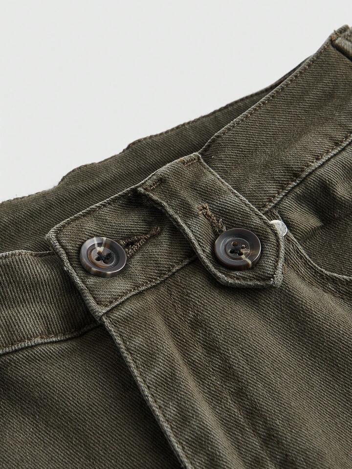 Grunge Punk Ladies" Street Style Casual Flared Jeans With Workwear Pockets