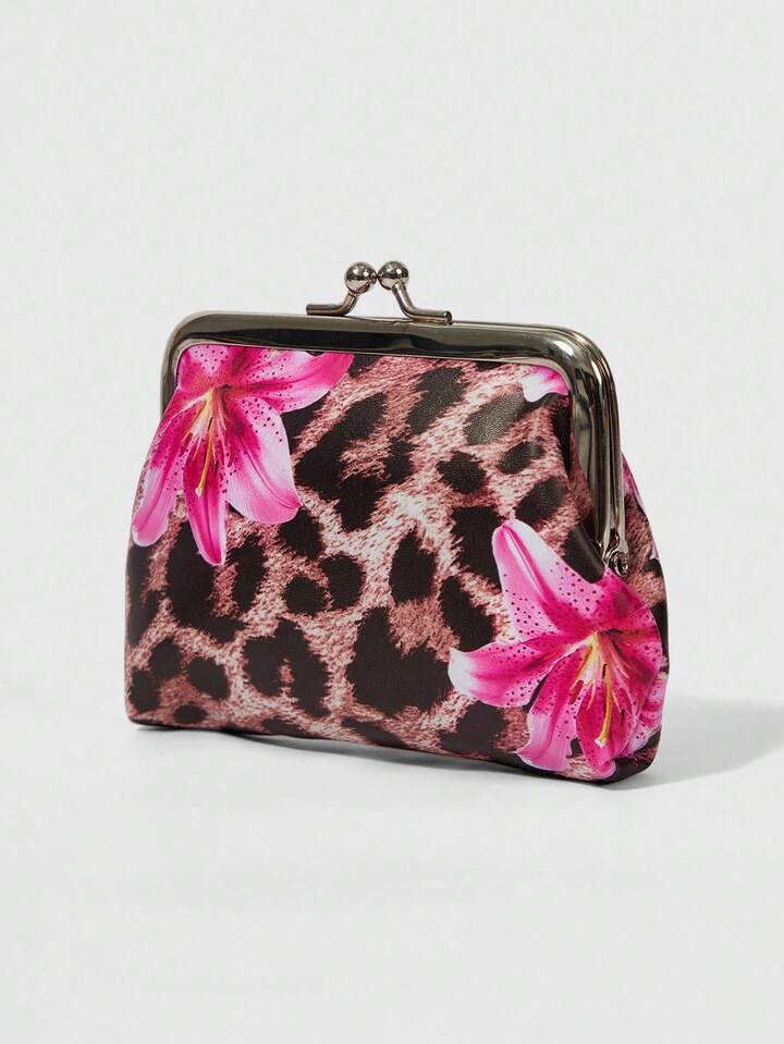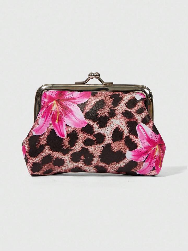 Grunge Punk Leopard Print Floral Pattern Daily Wear Fashion Coin Purse