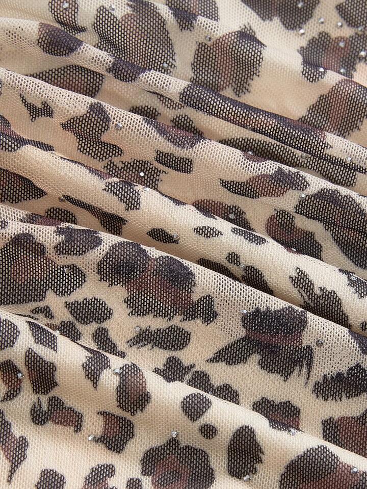 Grunge Punk Leopard Print Rhinestones Metal Chain Necktie Tight Fitted Crop Top For Women, Vintage Modern Style