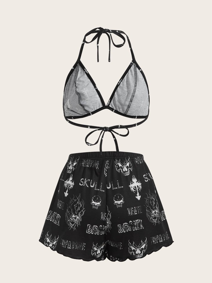 Grunge Punk Letter Graphic Halter PJ Set, School