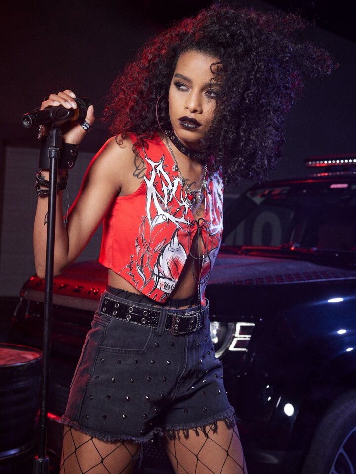 Grunge Punk Letter Heart Graphic Tie Front Tank Top