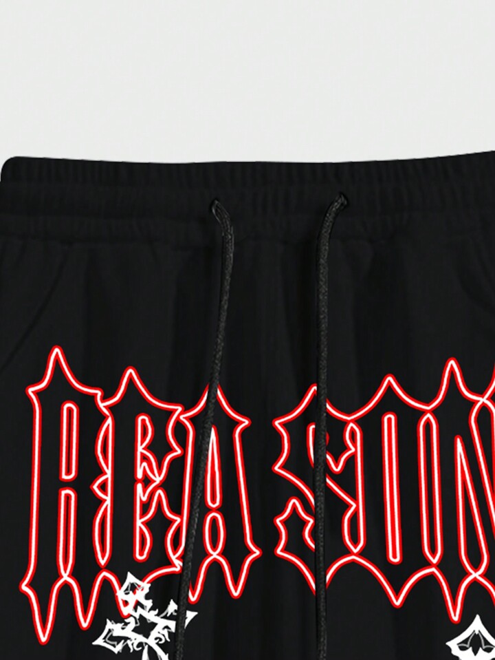Grunge Punk Men Cross Letter Graphic Drawstring Waist Sweatpants