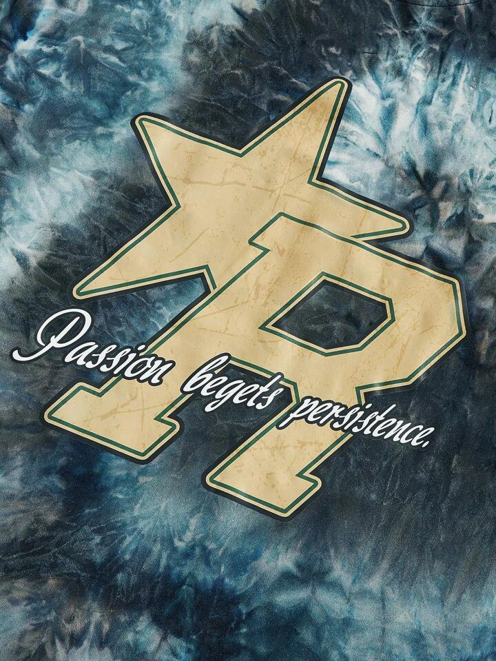 Grunge Punk Men Tie Dye Letter Graphic Drop Shoulder Tee