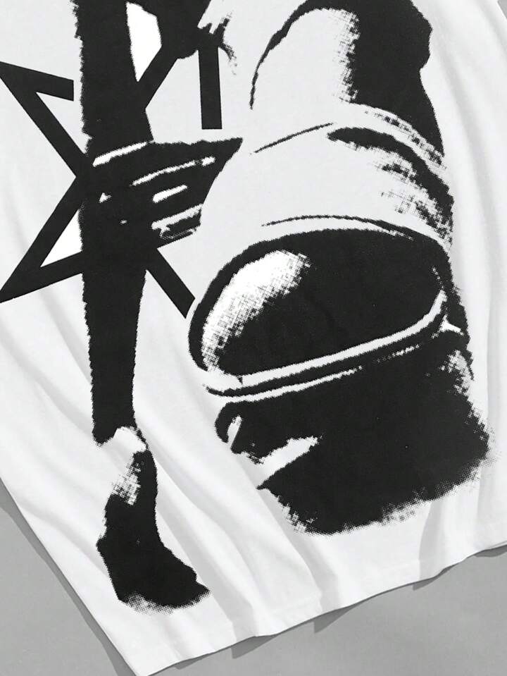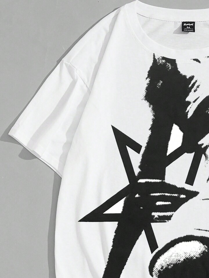Grunge Punk Men's Body Printed Short Sleeve T-Shirt, School