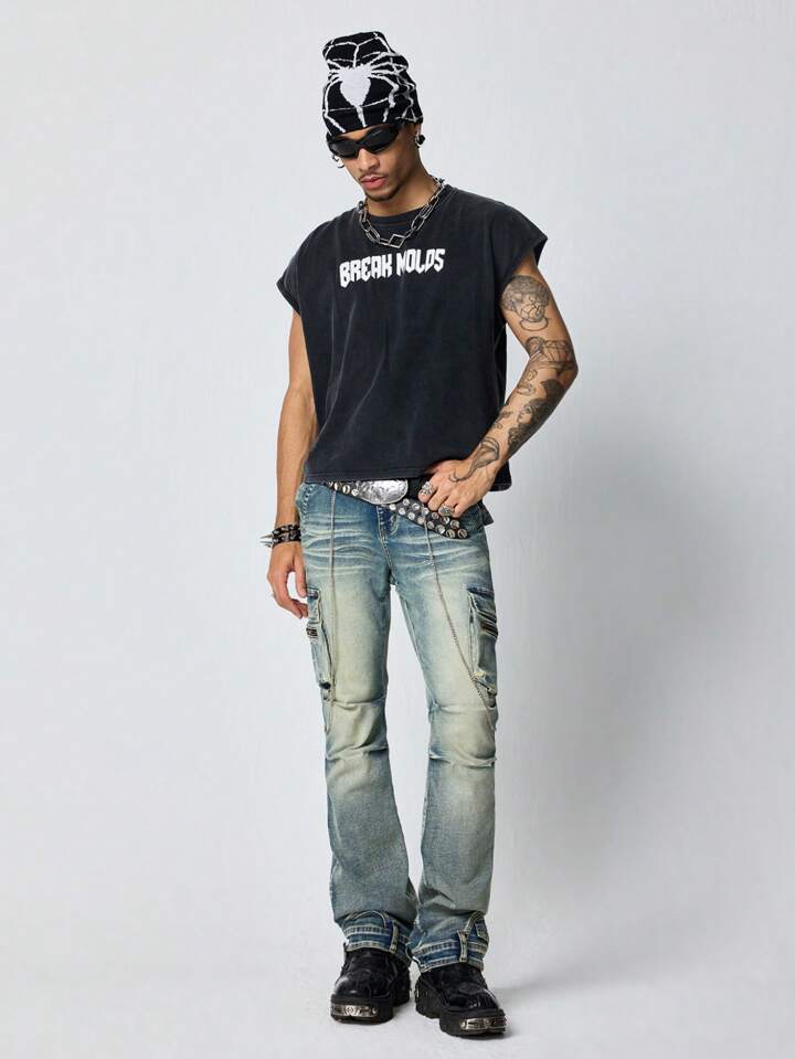 Street Life Men's Cargo Casual Front Button Pocket Layered Straight Jeans, Street Style