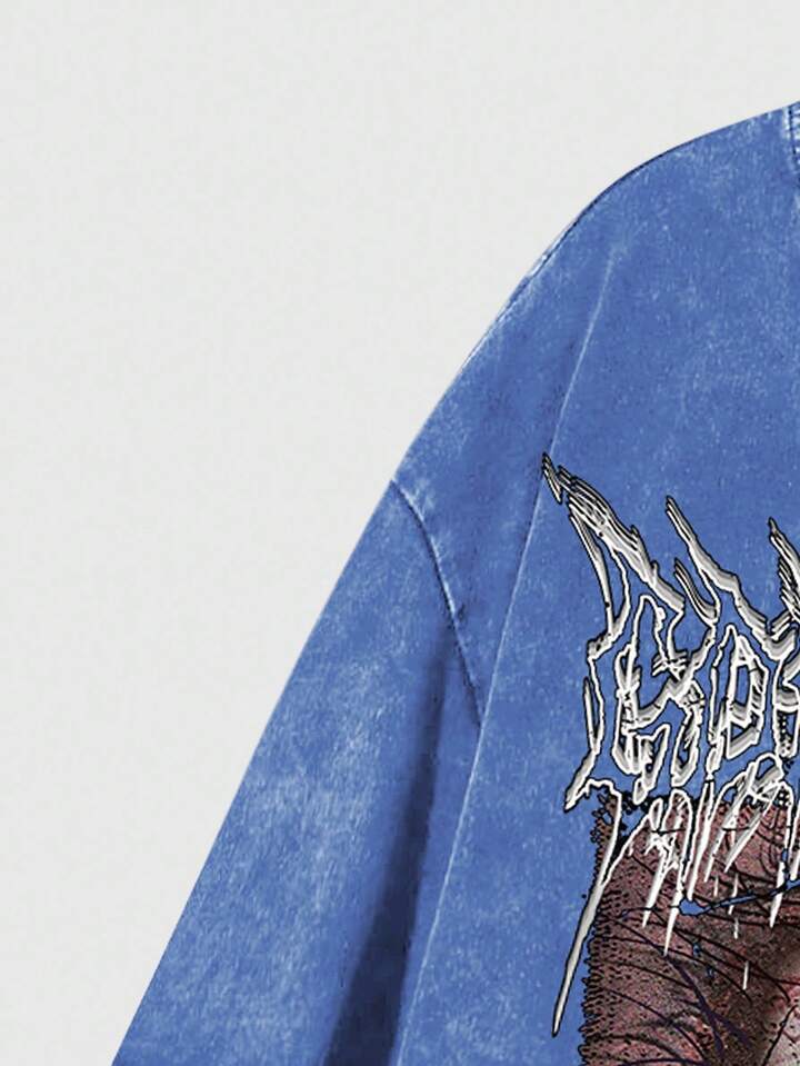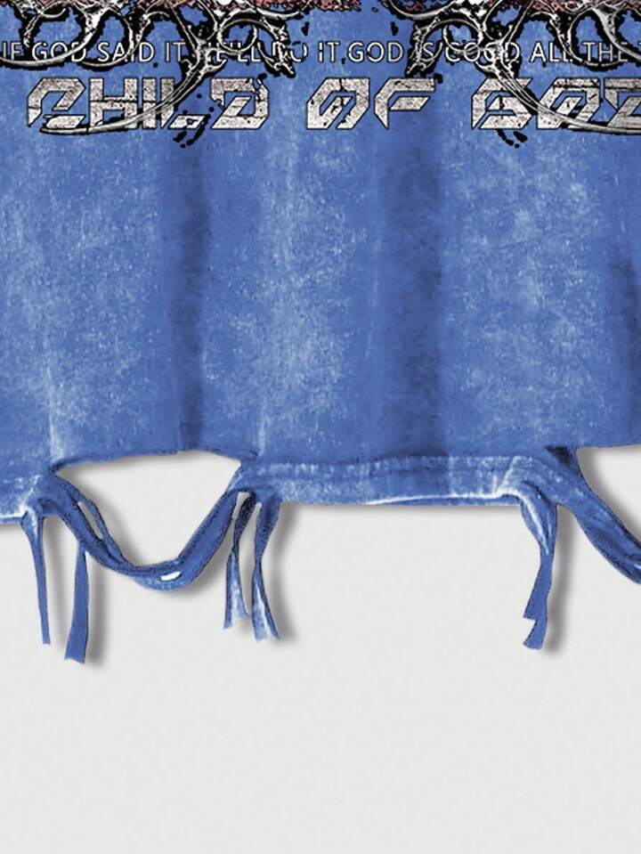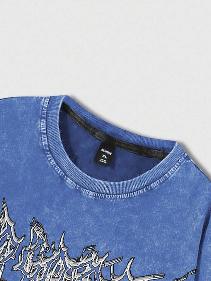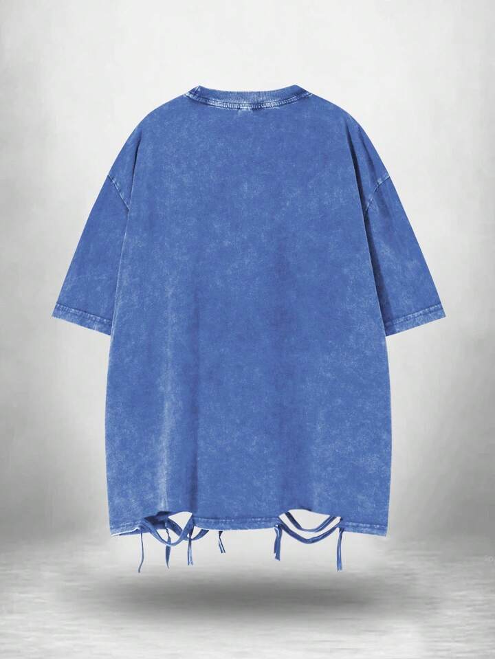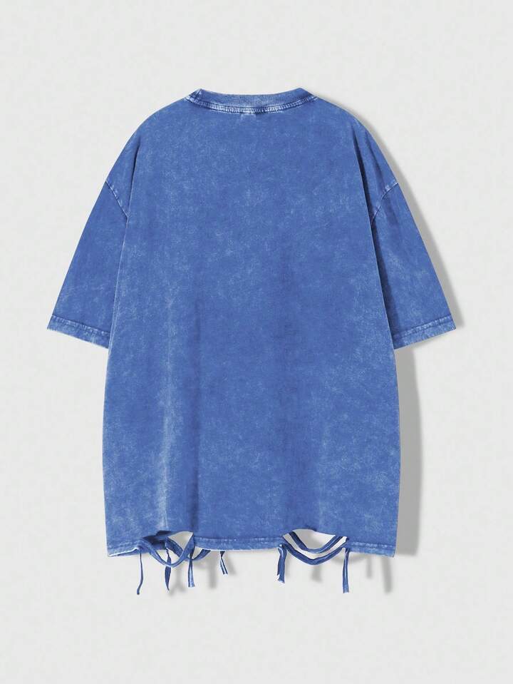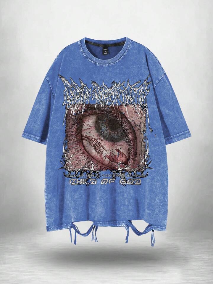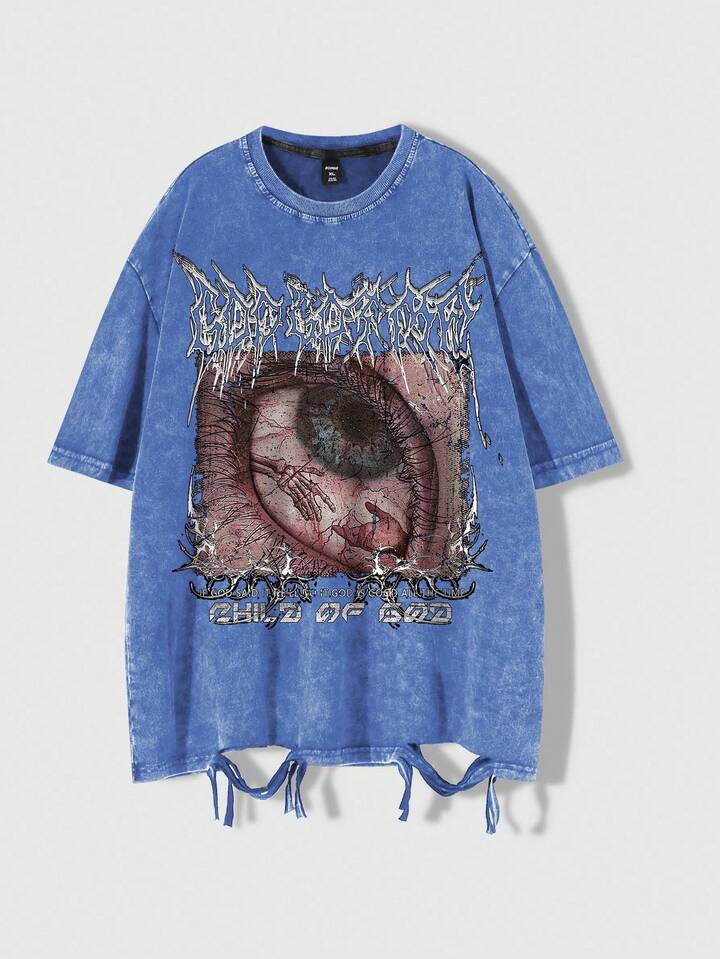 Grunge Punk Men's Casual Eye Print Distressed Hem Short Sleeve T-Shirt, Summer