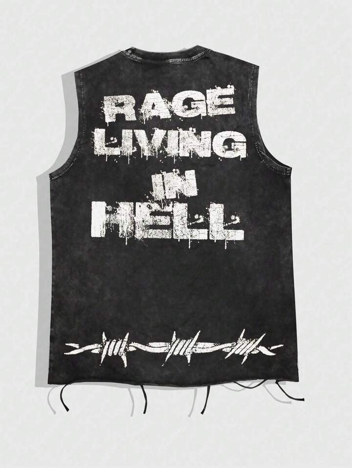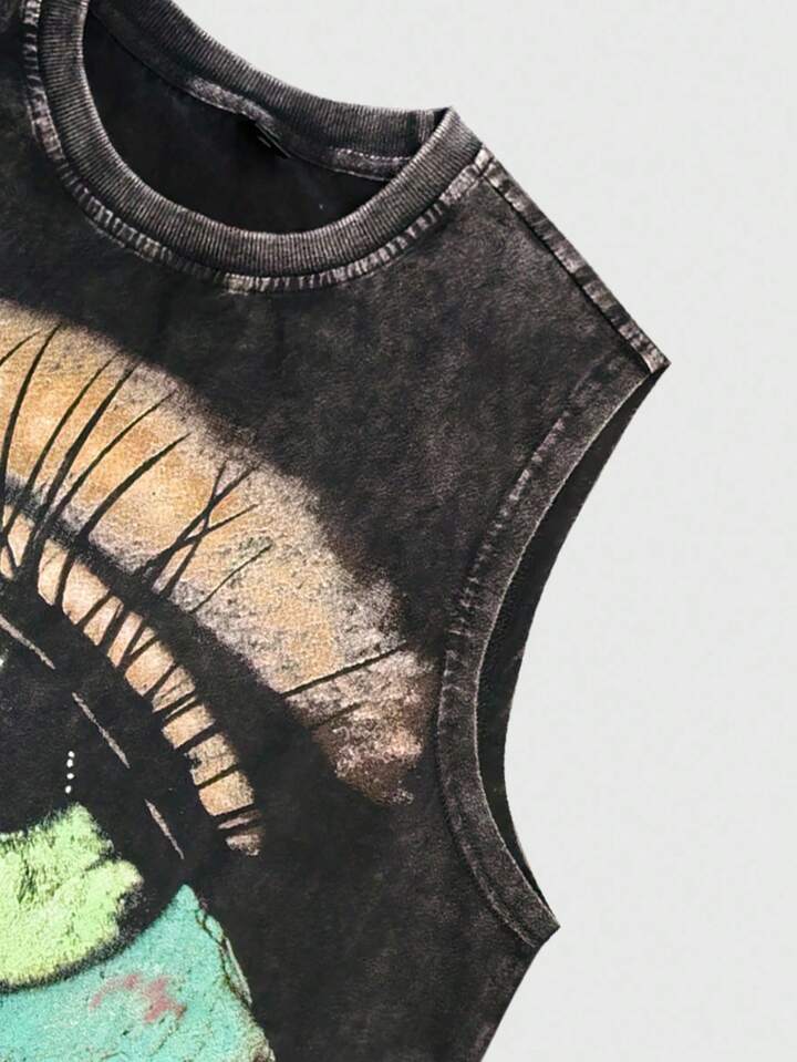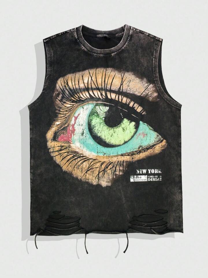 Grunge Punk Men's Casual Eye Print Round Neck Distressed Tank Top