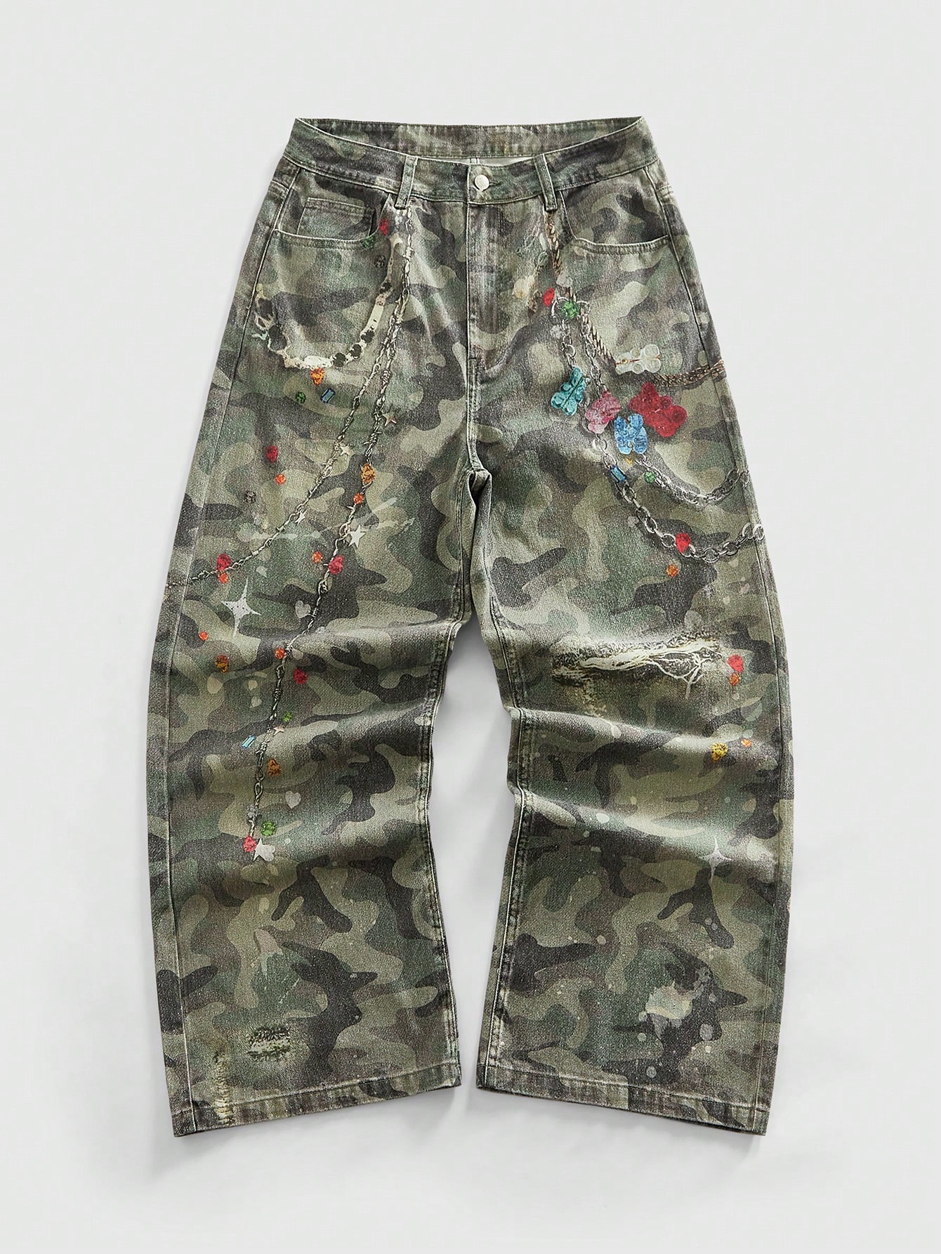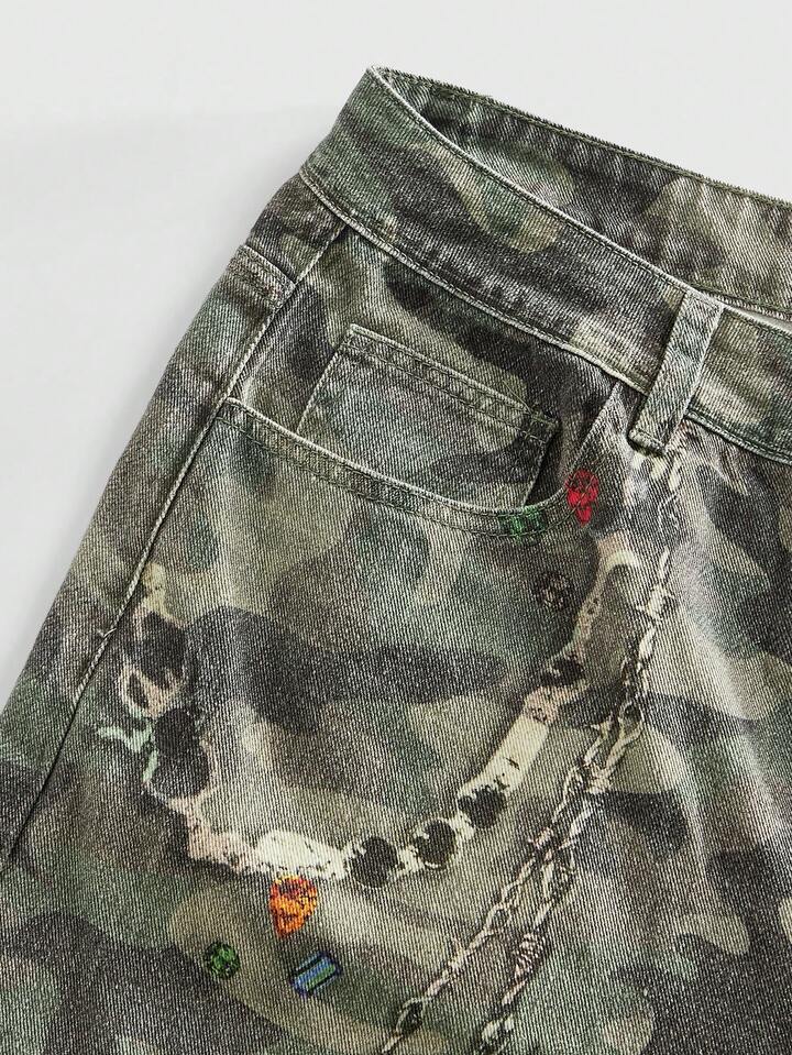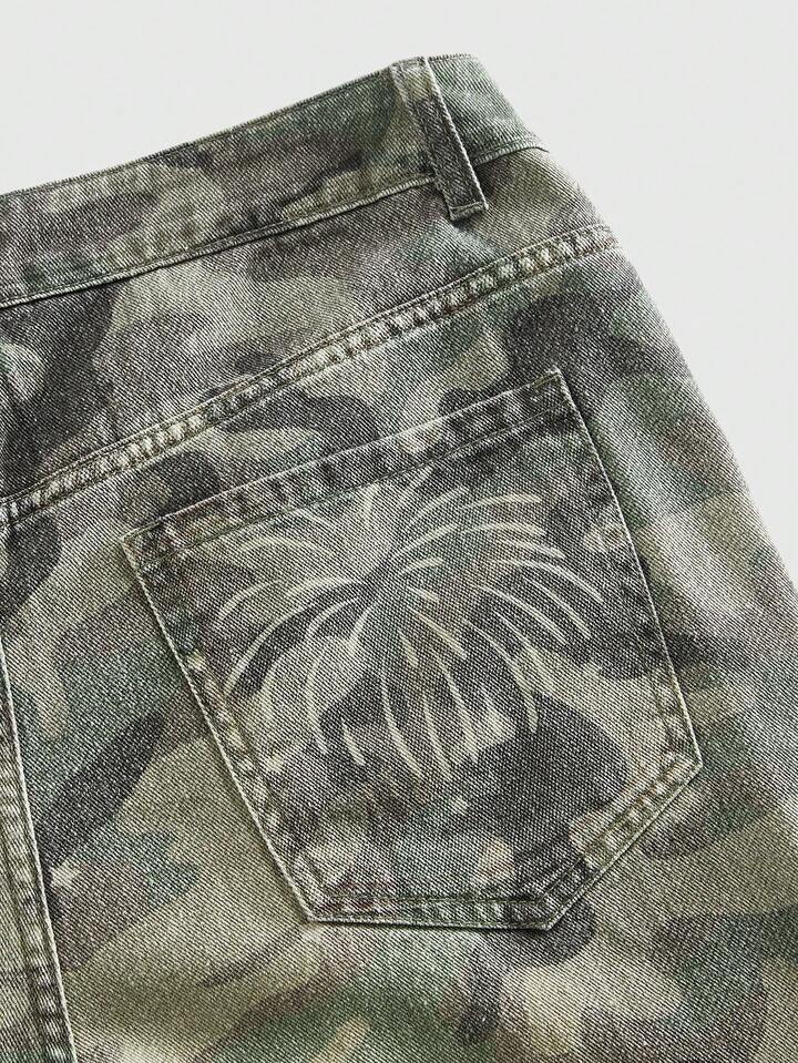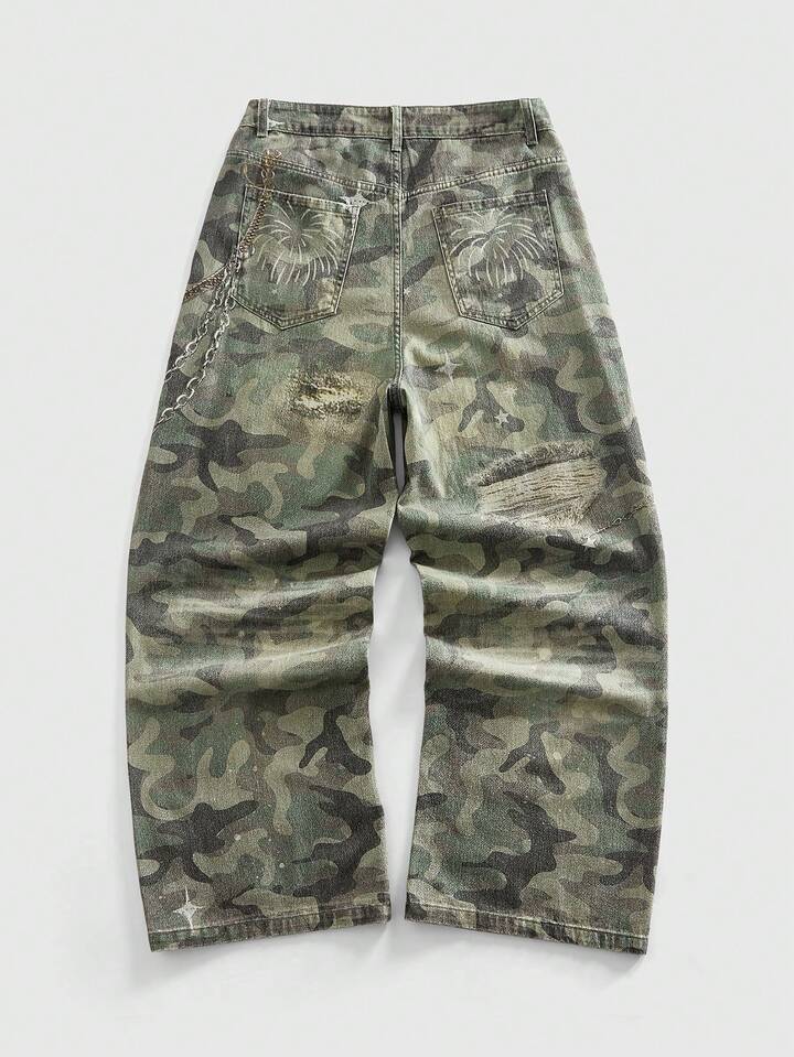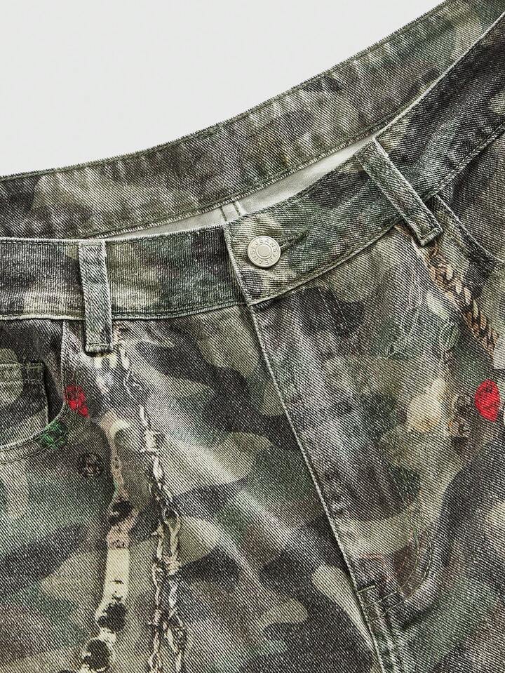 Grunge Punk Men's Casual Retro Camouflage Print Denim Jeans