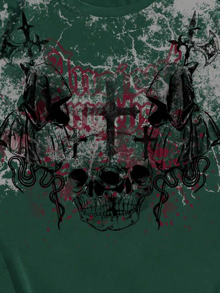 Grunge Punk Men's Casual T-Shirt With Skull Print, Round Neck, Short Sleeve