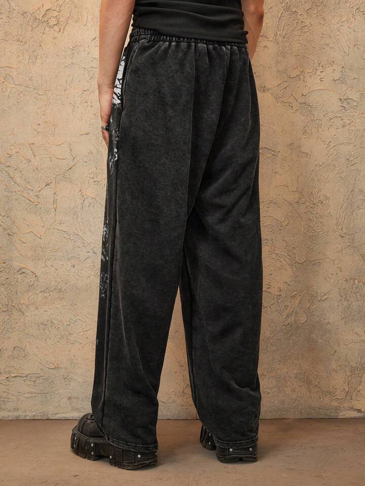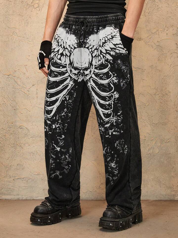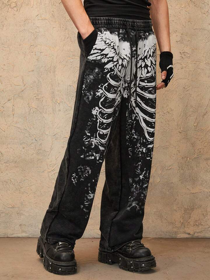 Grunge Punk Men's Casual Wing Print Drawstring Waist Pockets Wide Leg Loose Sweatpants
