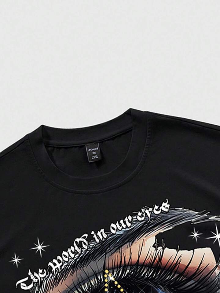 Grunge Punk Men's Eye Printed T-Shirt & Drawstring Shorts Set