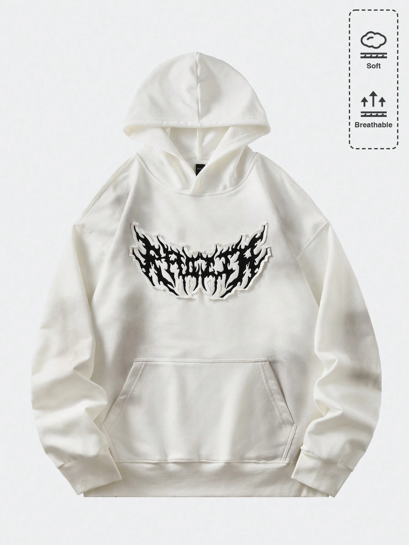Grunge Punk Men's Faded Vintage Look Applique Embroidery Hoodie, Streetwear Style