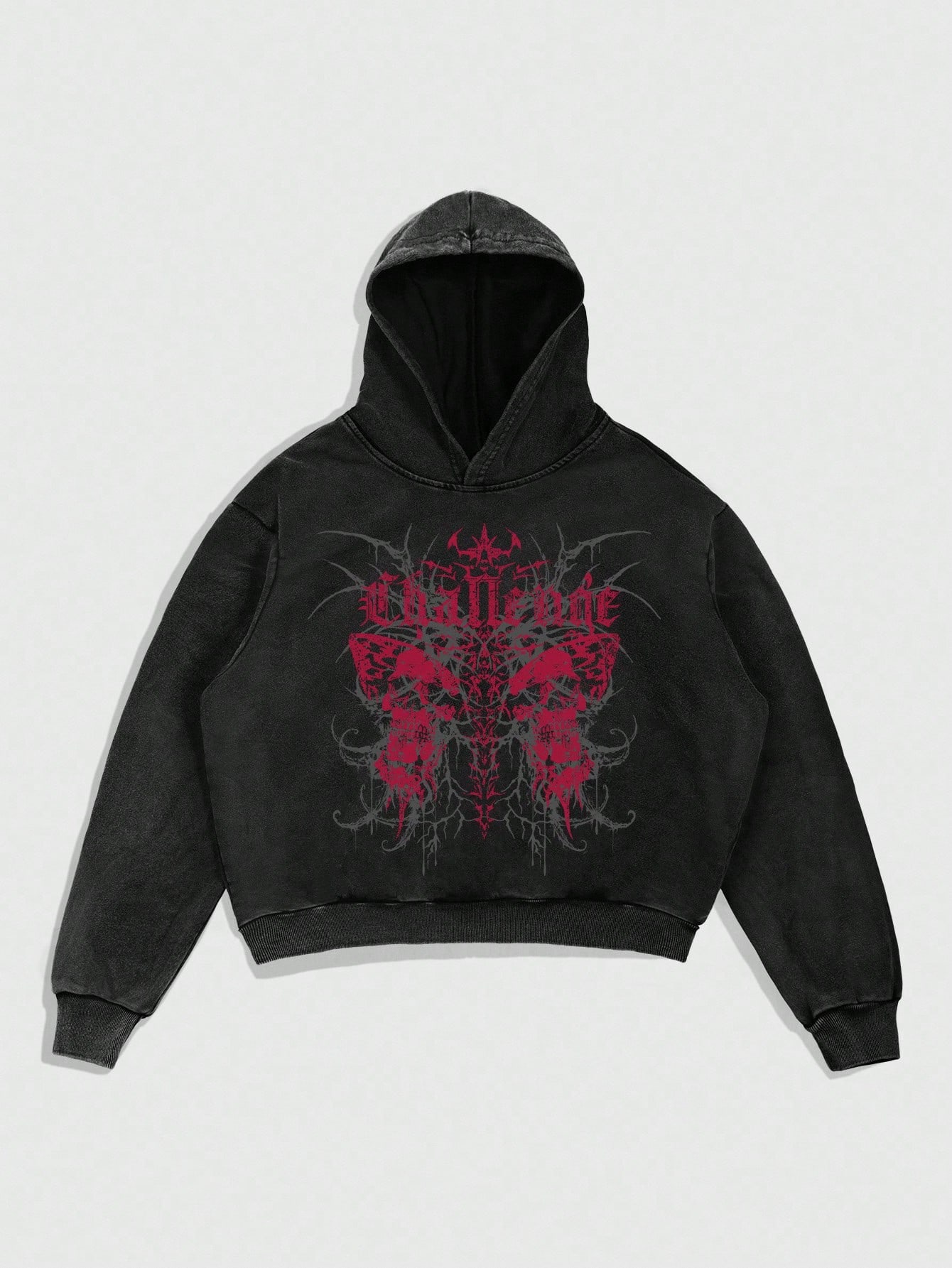 Grunge Punk Men's Fashionable Retro Versatile Skull Loose Snowflake Hoodie Sweatshirt, For Fall