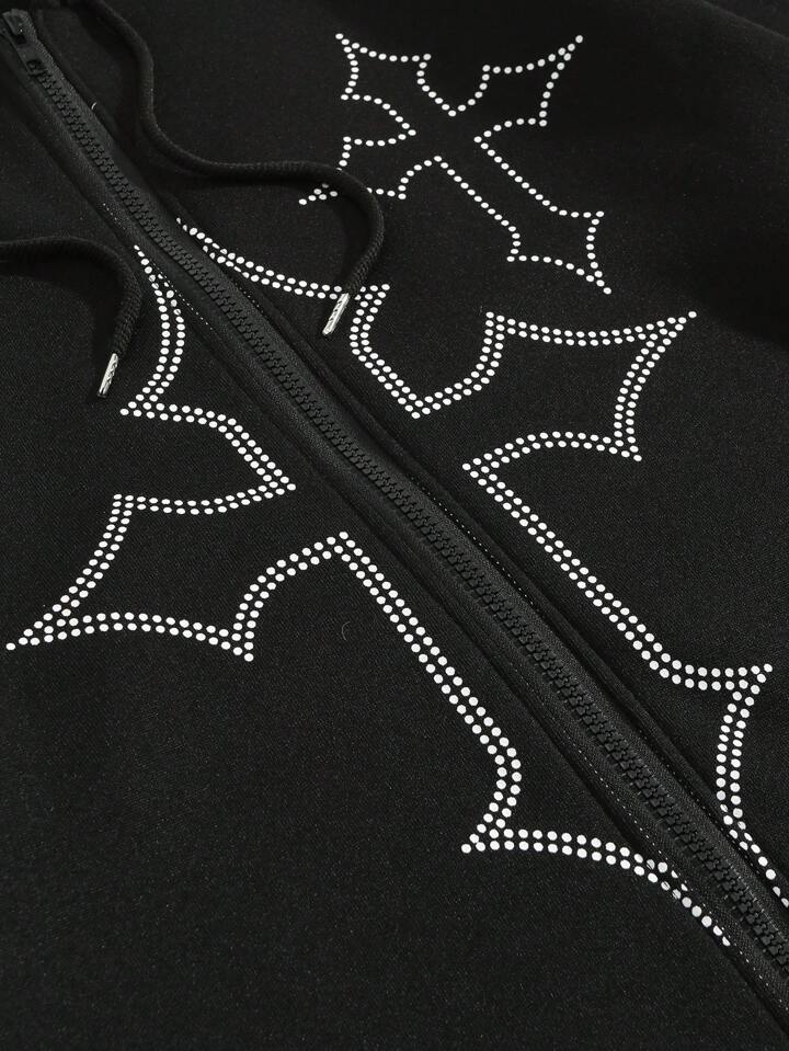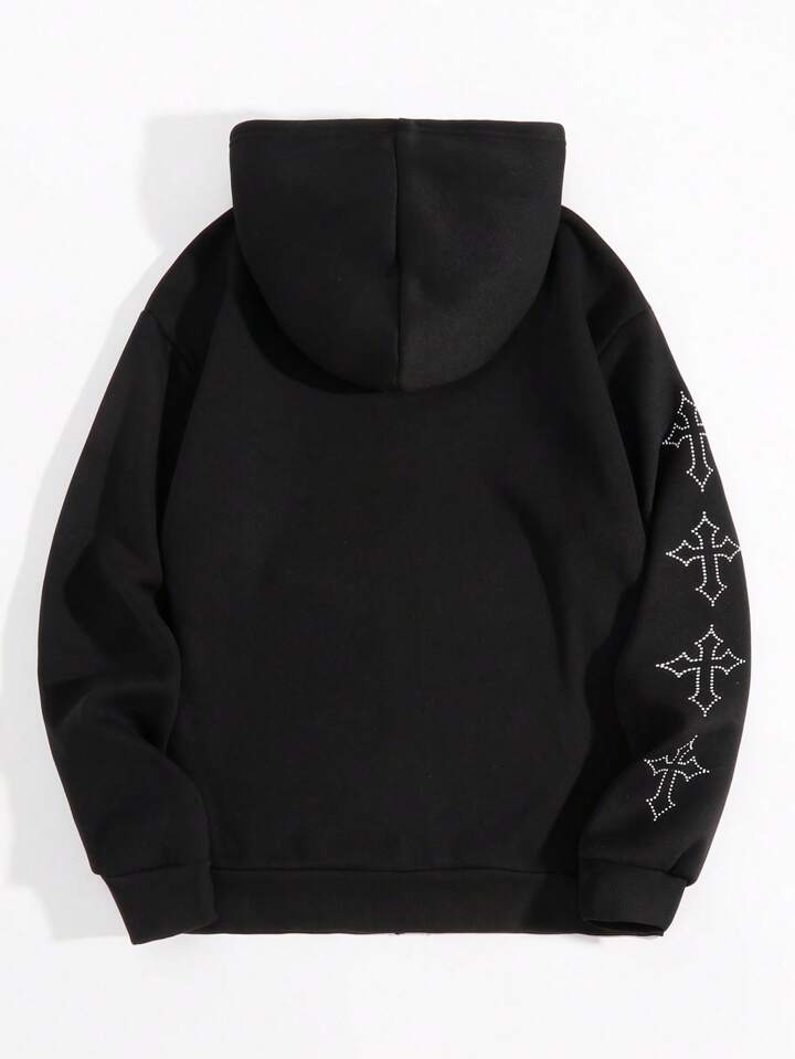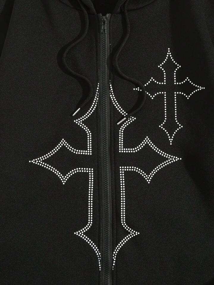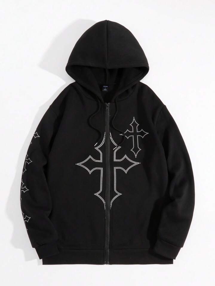 Grunge Punk Men's Hooded Sweatshirt With Cross Print And Zipper