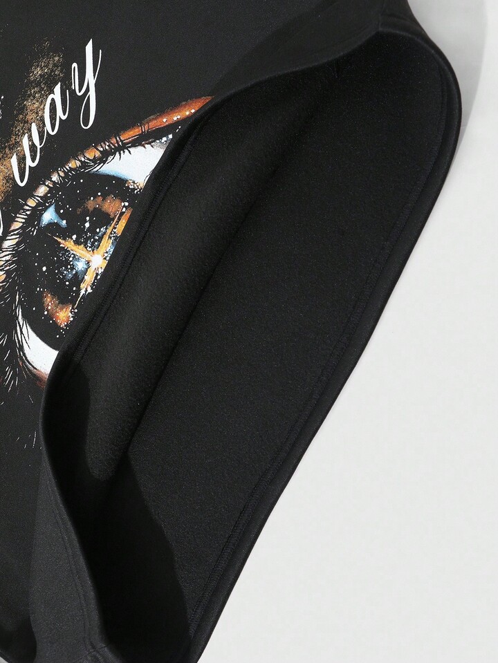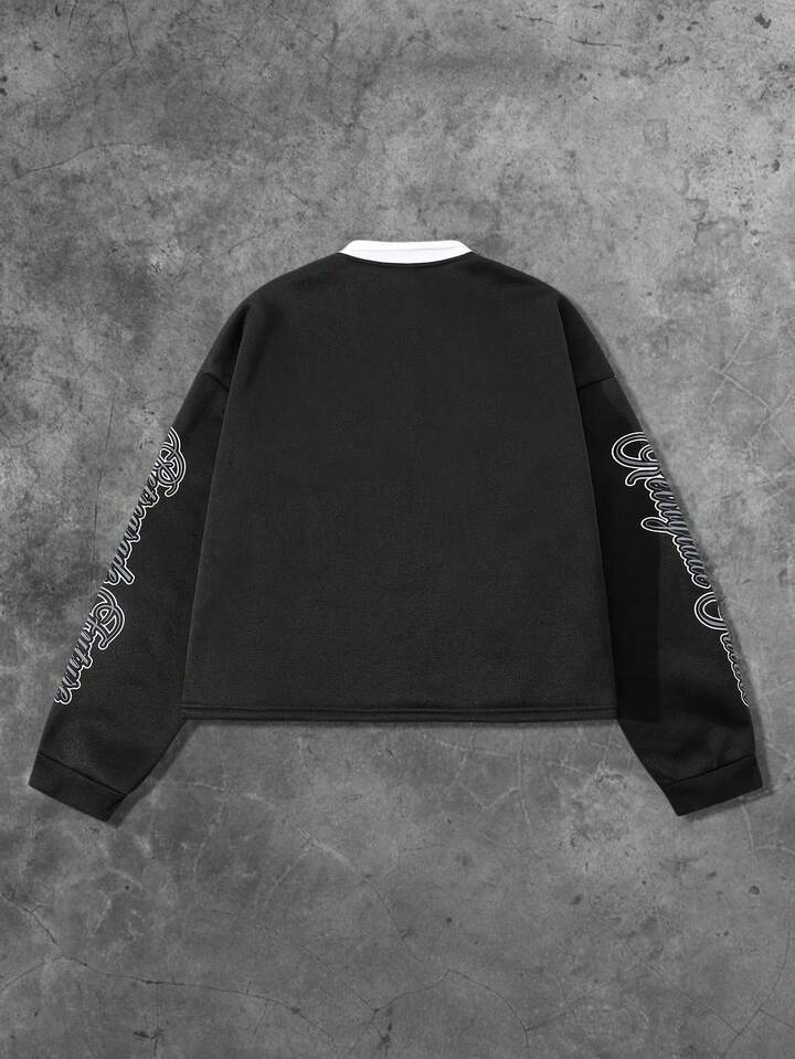 Grunge Punk Men's Loose Fit Long Sleeve Eye Print Polo Shirt, Autumn, For Fall