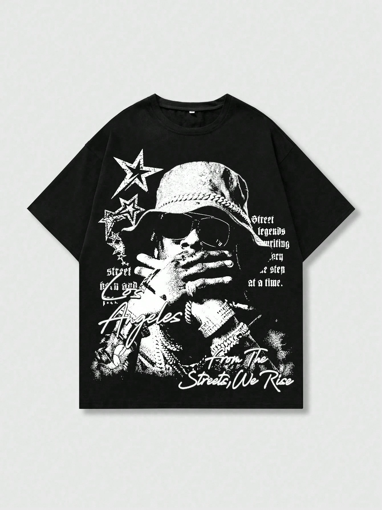 Grunge Punk Men's Printed Short Sleeve T-Shirt, Suitable For Spring/Summer Everyday Wear, 2000s Style
