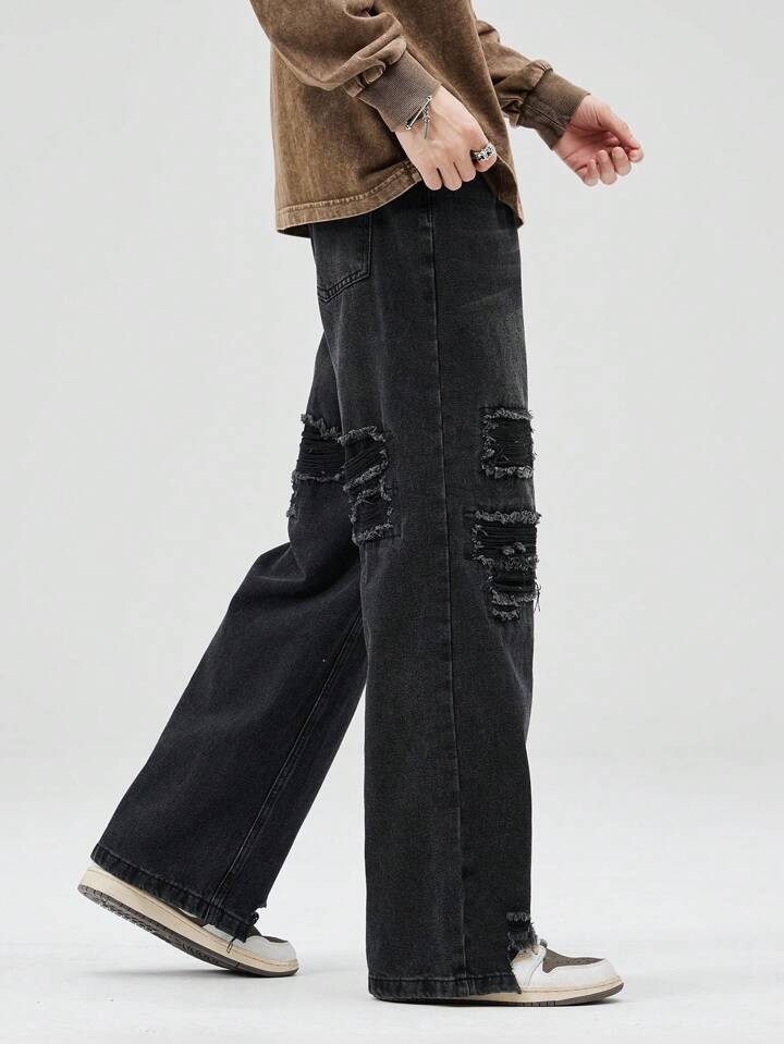 Grunge Punk Men's Straight Leg Ripped Jeans