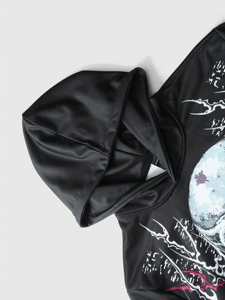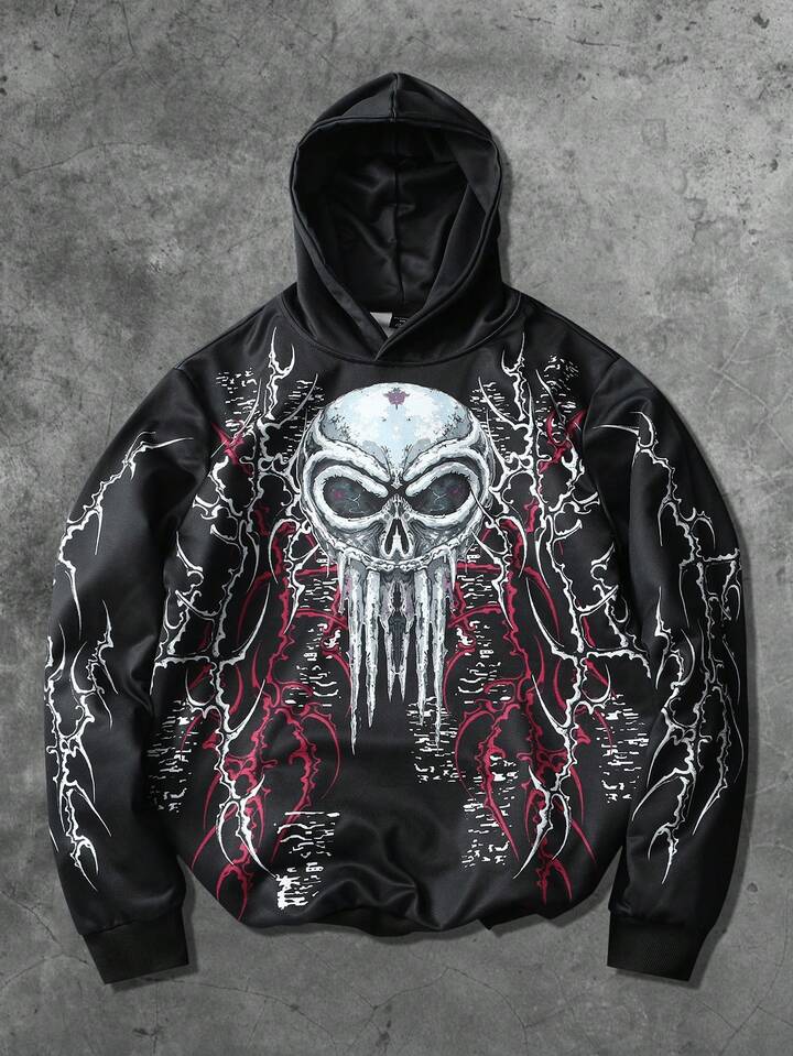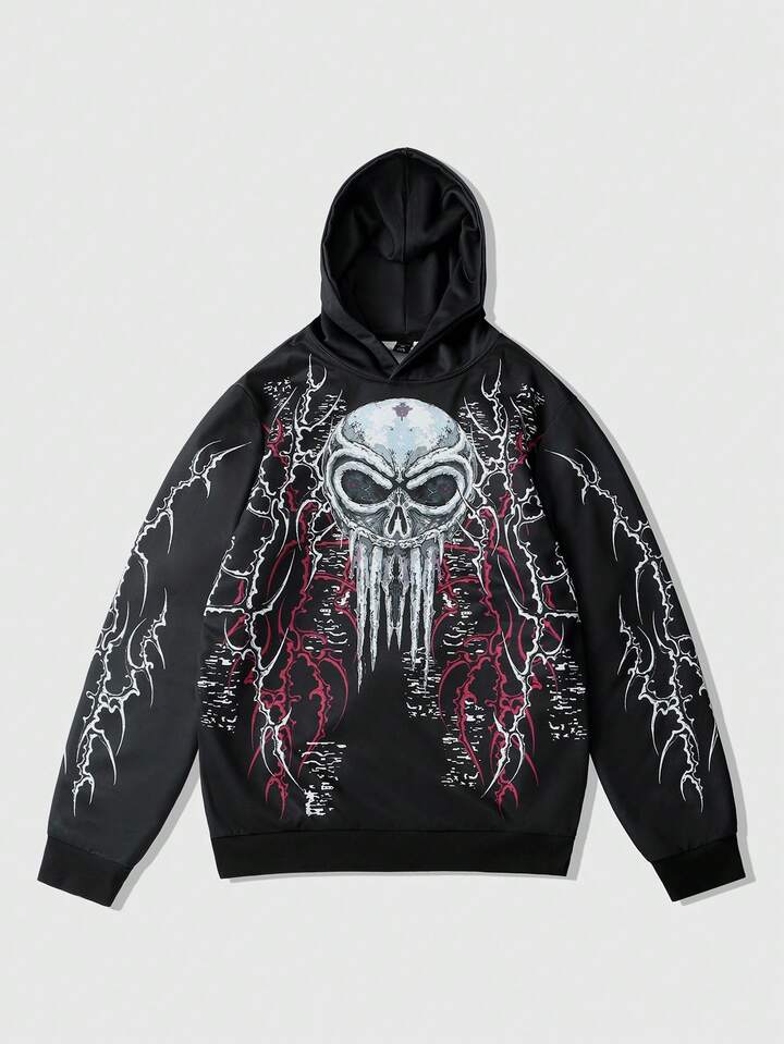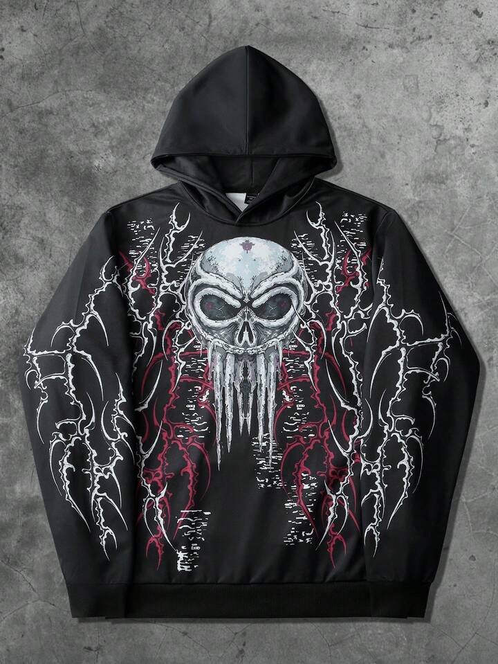 Grunge Punk Men's Street Fashion Skull Print Hoodie