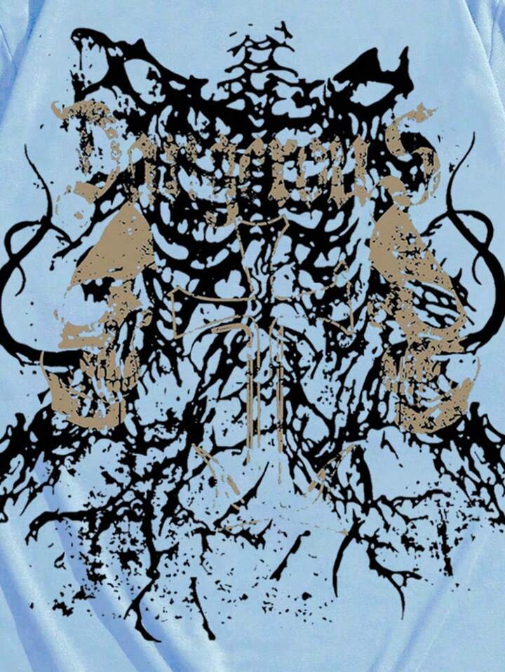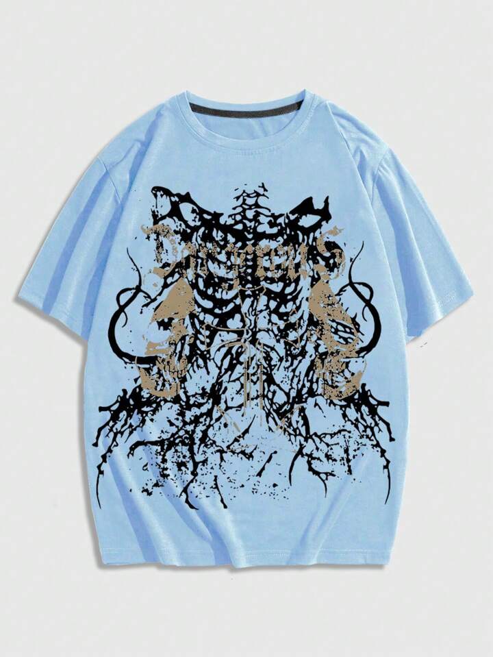 Grunge Punk Men's Street Life Skeleton Print Round Neck Short Sleeve Casual T-Shirt, Halloween