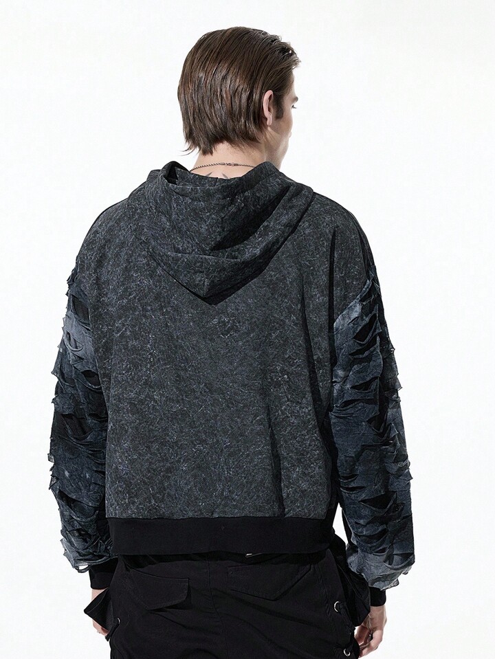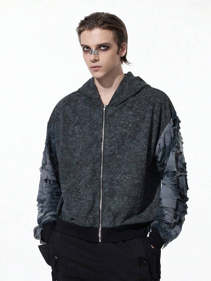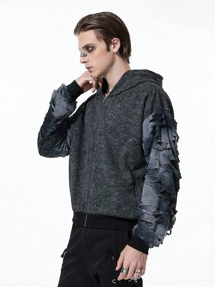 Grunge Punk Men's Streetwear Color Block Zip-Up Hoodie, Fall