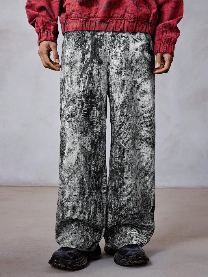 Grunge Punk Men's Vintage Distressed Print Denim Jeans