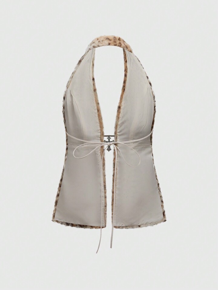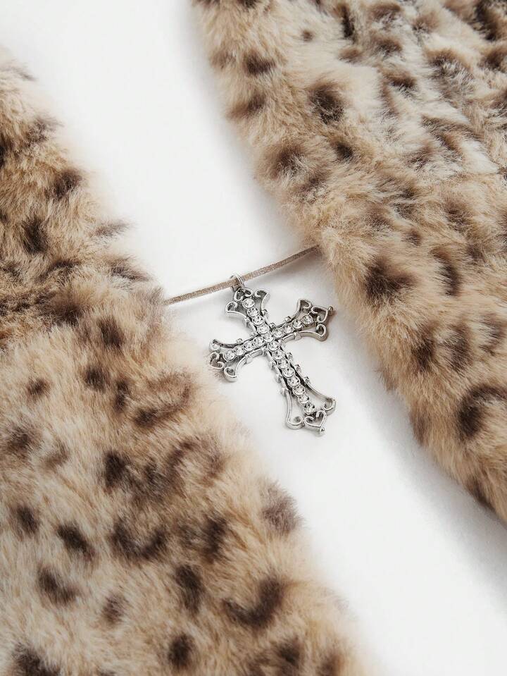 Grunge Punk Milenial Y2K Vintage Halter Neck Sexy Cross Charm Pendant Women Leopard Print Tank Top