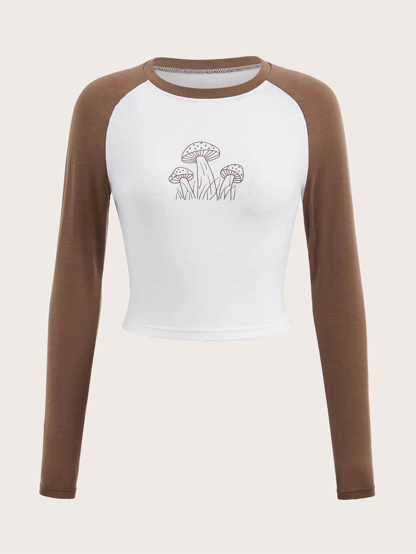 Grunge Punk Mushroom Print Raglan Sleeve Tee