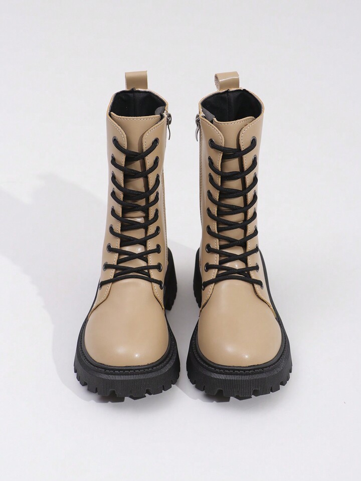 Grunge Punk New Fall Comfortable & Casual Women Minimalistic Tie-Up Zip Decor Mid-Calf Boots