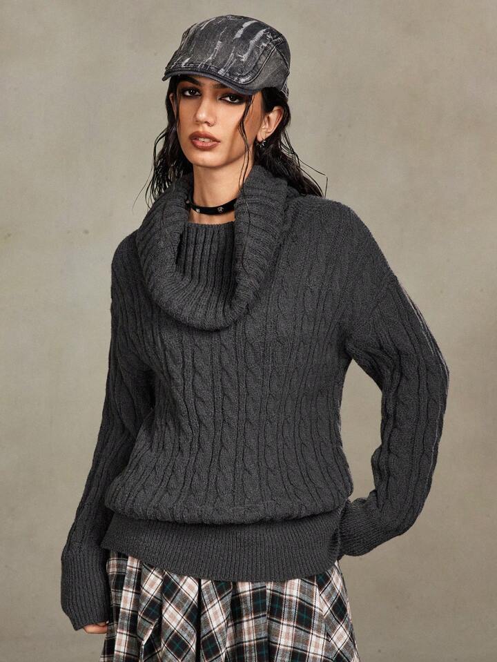 Grunge Punk Office Siren Commuting Style Solid Color Versatile Women's Loose Fit Off The Shoulder Raglan Sweater